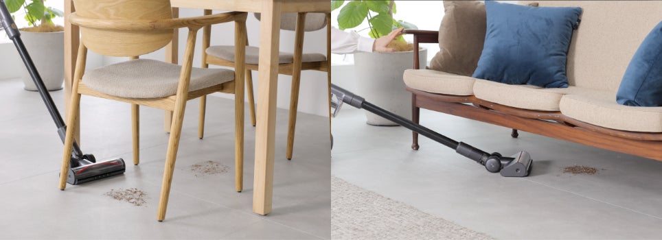 狭い場所やすき間のホコリを可視化し、見逃しがちなゴミも確実に除去します。