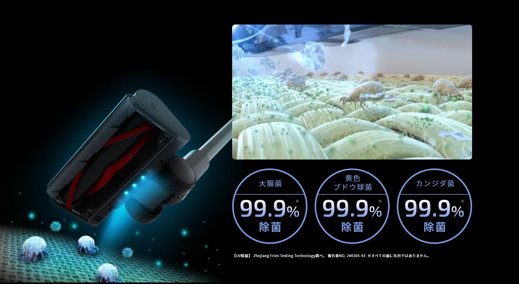 ヘッドに新搭載されたUV LEDにより、吸引しながらしっかり除菌
