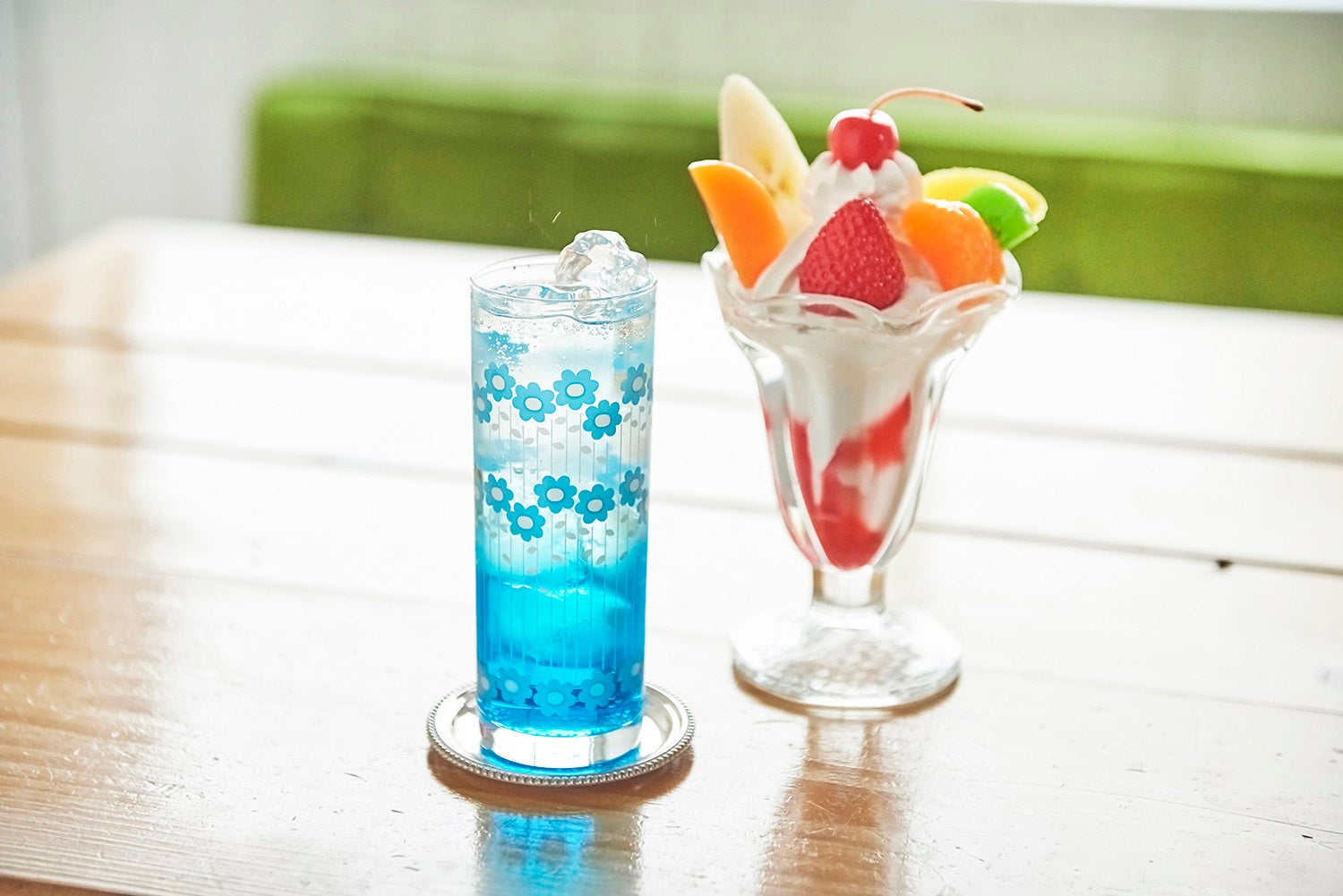 ピンクはスイーツと一緒に使用いただいたり、ブルーはメロンソーダなどの爽やかなドリンクを注いでいただくと色味が合わさり綺麗です。