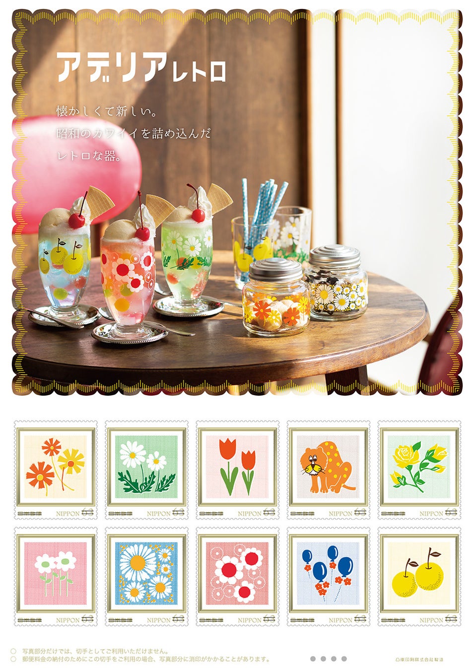 若い世代からも注目が集まる昭和レトロな「アデリアレトロ」の切手が復刻グラスとセットで登場!