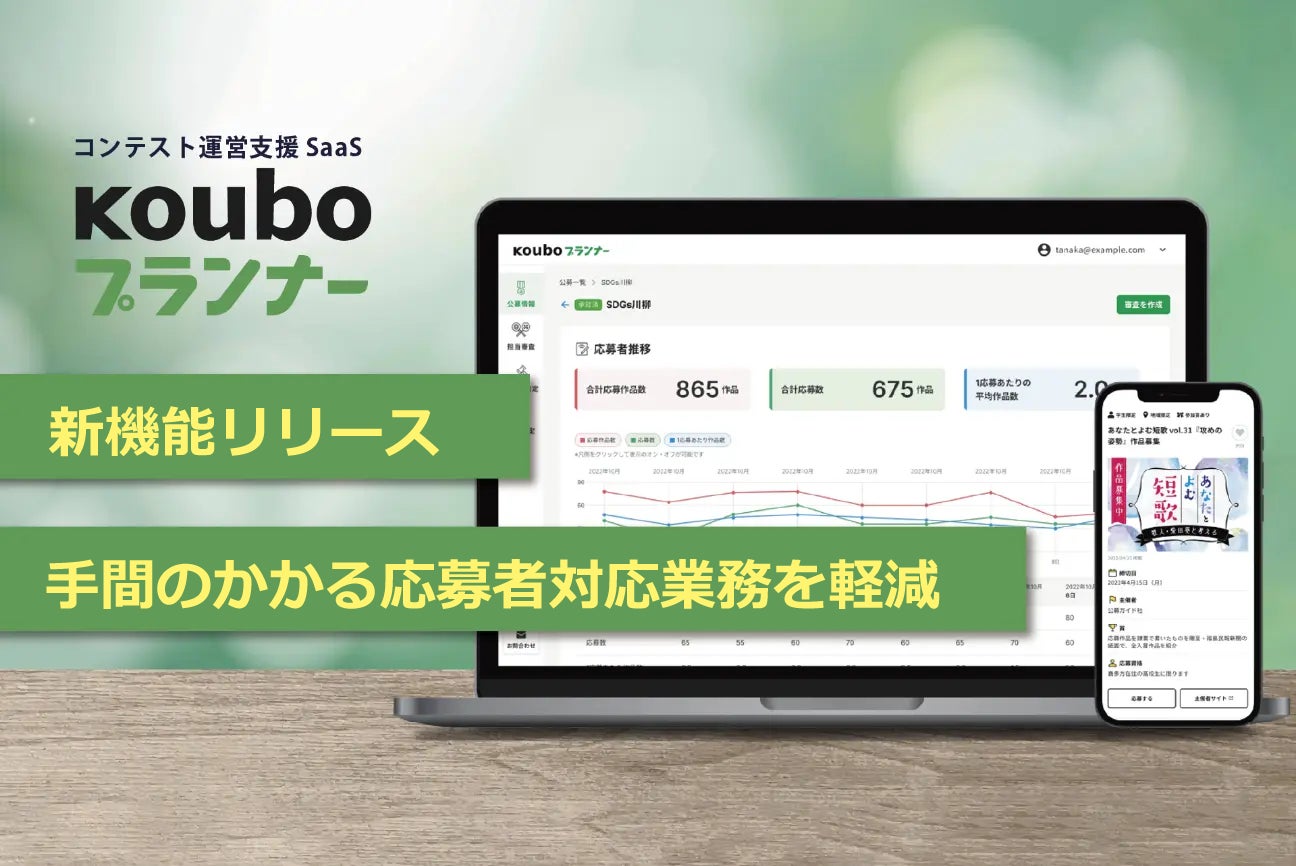 株式会社公募ガイド社(代表取締役:浅田邦裕、本社:東京都港区、以下「公募ガイド社」)は、コンテスト運営SaaS『Kouboプランナー』において「応募者連絡(チャット)機能」を追加リリースしました。「応募者連絡(チャット)機能」は、メールや電話などで行っていた応募者との連絡業務を管理画面から行えるシステムで、事務局の業務負荷の軽減、および誤送信による個人情報漏洩も防ぐことができます。