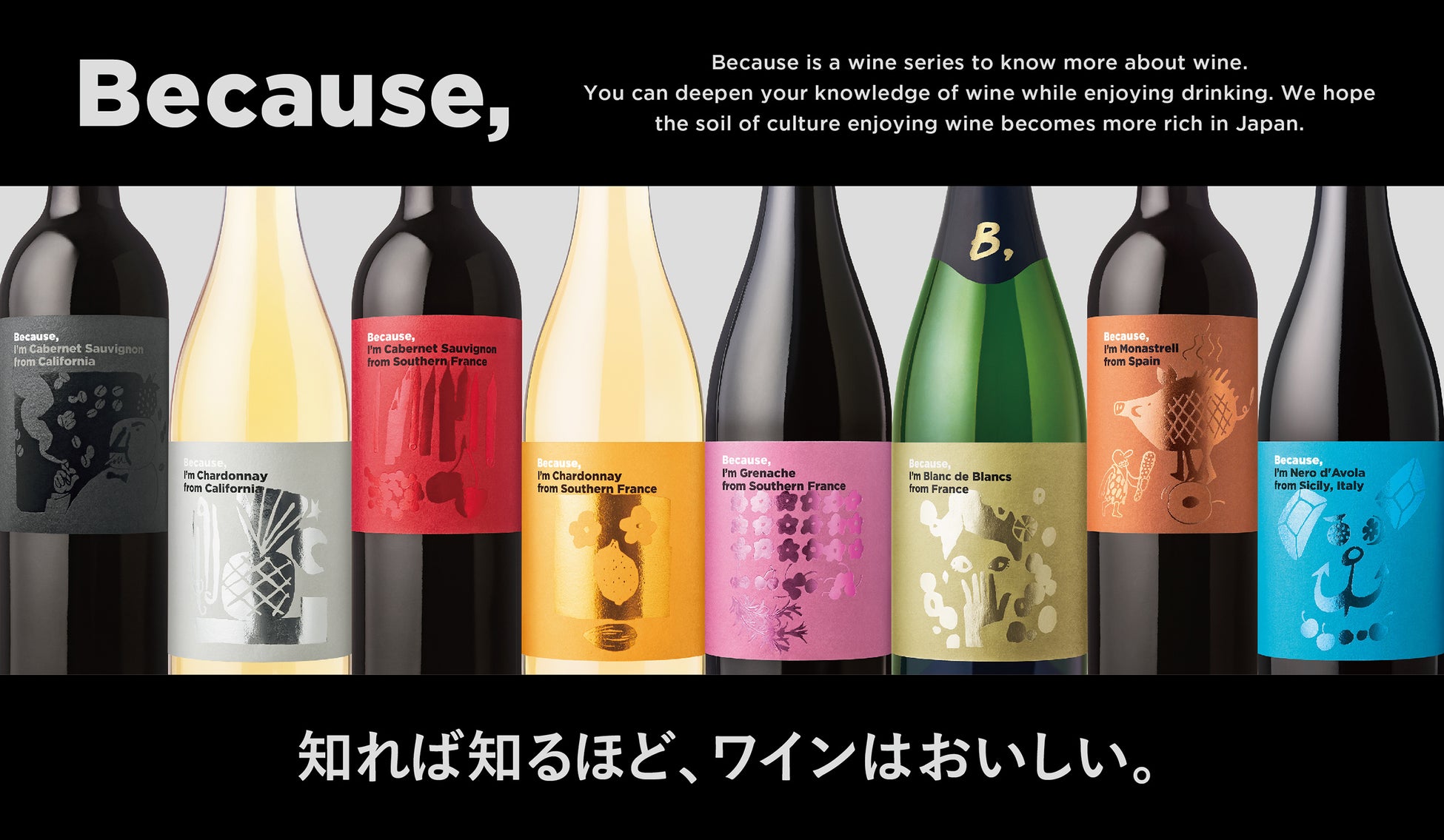 Because, ワインシリーズは、「知れば知るほど、ワインはおいしい。」をコンセプトに、気軽に楽しく味わっていただきながら、ワインの知識を深めていくことができるワインブランドです。