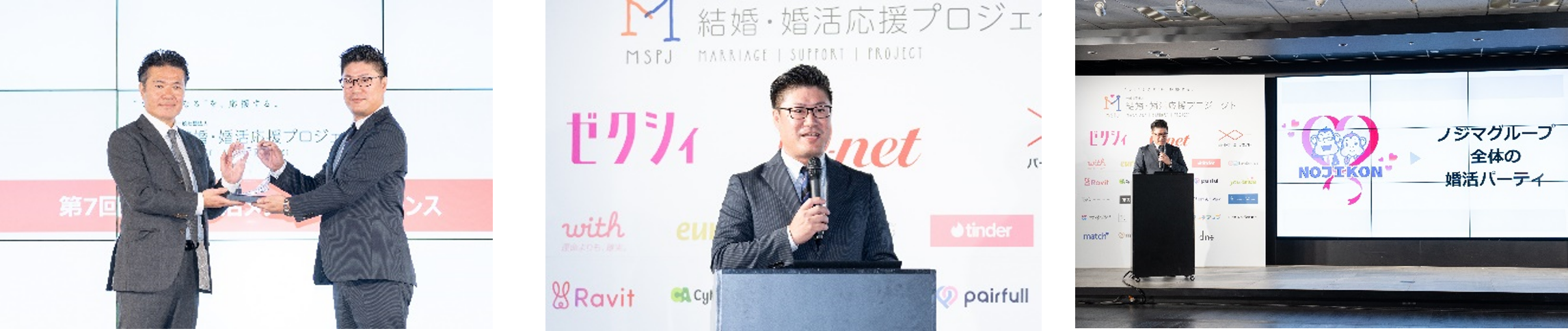 本日はこのような名誉あるアワードに選出をして頂き、驚きと共に非常に喜ばしく思っております。株式会社ノジマでは、「NOJIKON」という名前の婚活イベントを実施しております。こちらのイベントは従業員の発案がきっかけで企画されたものになっております。従業員同士での出会いをもっと作りたいという思いから、婚活パーティーを実施したいという企画が提案され、プライベートでの充実が仕事にもプラスになるのではという考えで、実施をする運びとなりました。