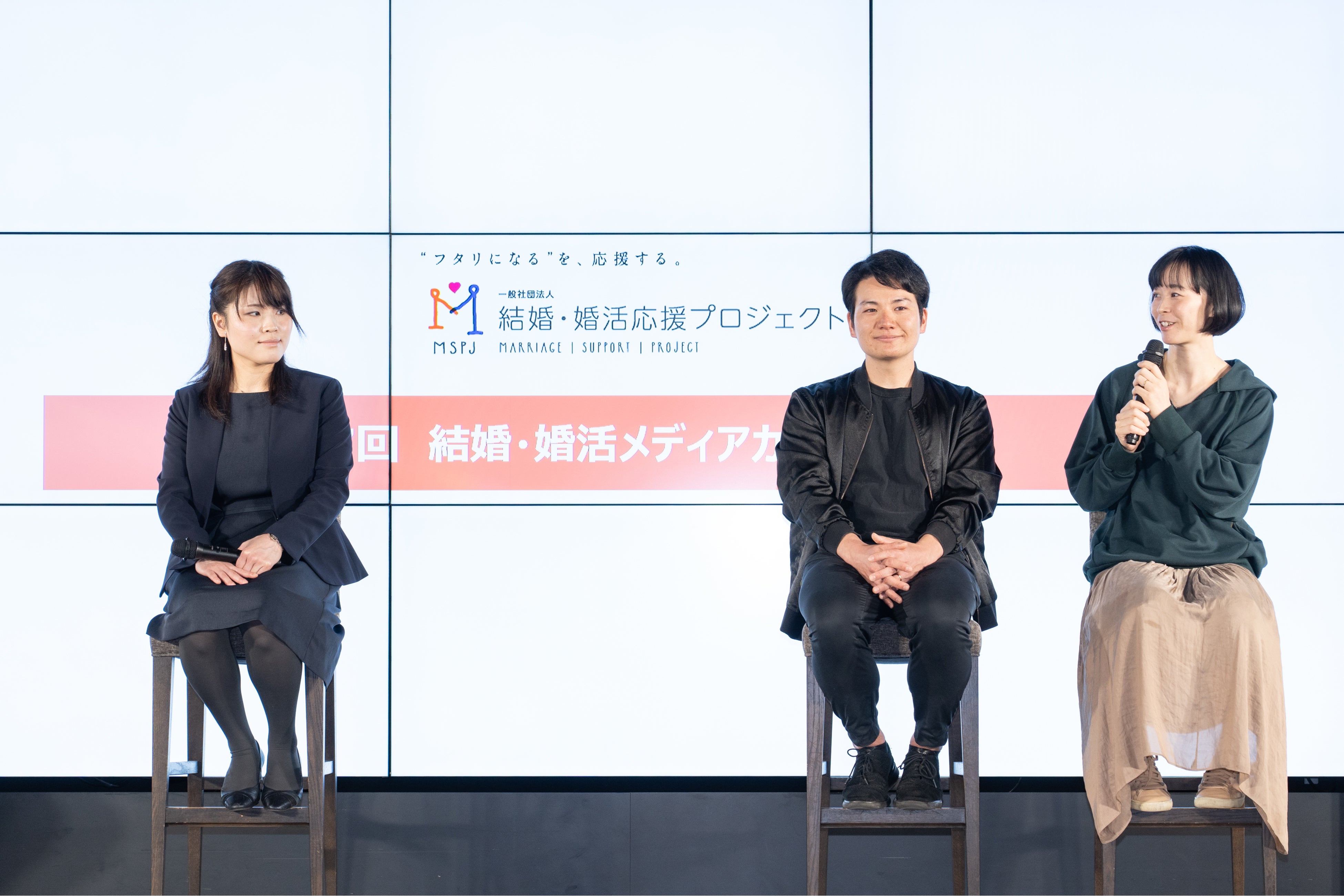 服部さんは、「忙しくて時間がないからという気持ちは自分もそうでしたが、世界でひとりしかいない大好きな人と結婚するためにアプリを使うのはすごくいいことかなと思うので、ぜひおすすめしたいと思います」と笑顔で語られ、夫人も「コロナで出会いが減る中で、マッチングアプリという出会いの場があるので、自分で踏み込んでほしい」とコメントされ、「私たちは東京と京都ということで、マッチングアプリを使ったからこそ出会えた人なので、ぜひ皆さんにもそういった出会いに期待してワクワクして使ってほしいなと思います」と語られました。