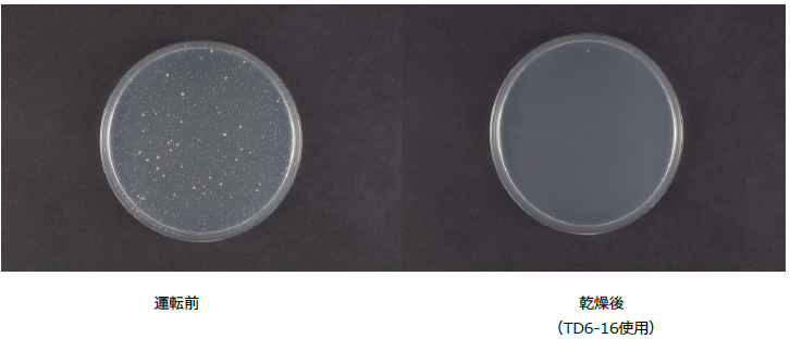 プラズマクラスターイオン発生ユニットが搭載された業務用乾燥機および業務用洗濯乾燥機の実機を用いて除菌性能の有無を評価試験した結果、いずれも99%以上の除菌性能が実証されました。また、静電気抑制効果についても、53.8%~86.5%の静電気量の低減効果が認められました。