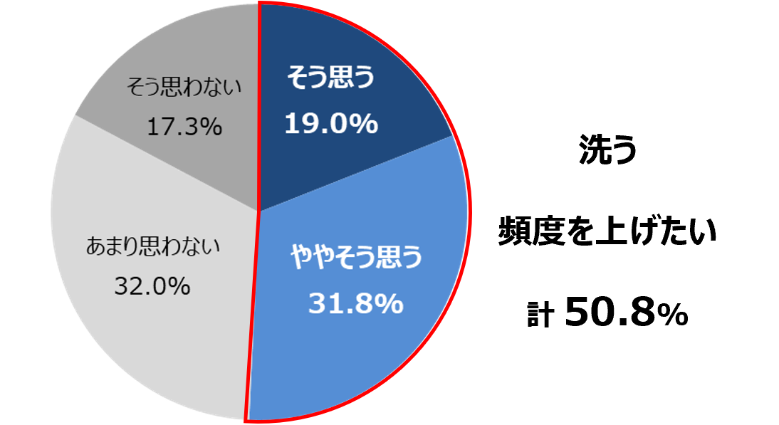Q:新型コロナウィルス感染症がまん延するようになってから、衣類や布製の日用品など身の回りのものを洗う頻度を上げたいと思うようになったか?(n=400)