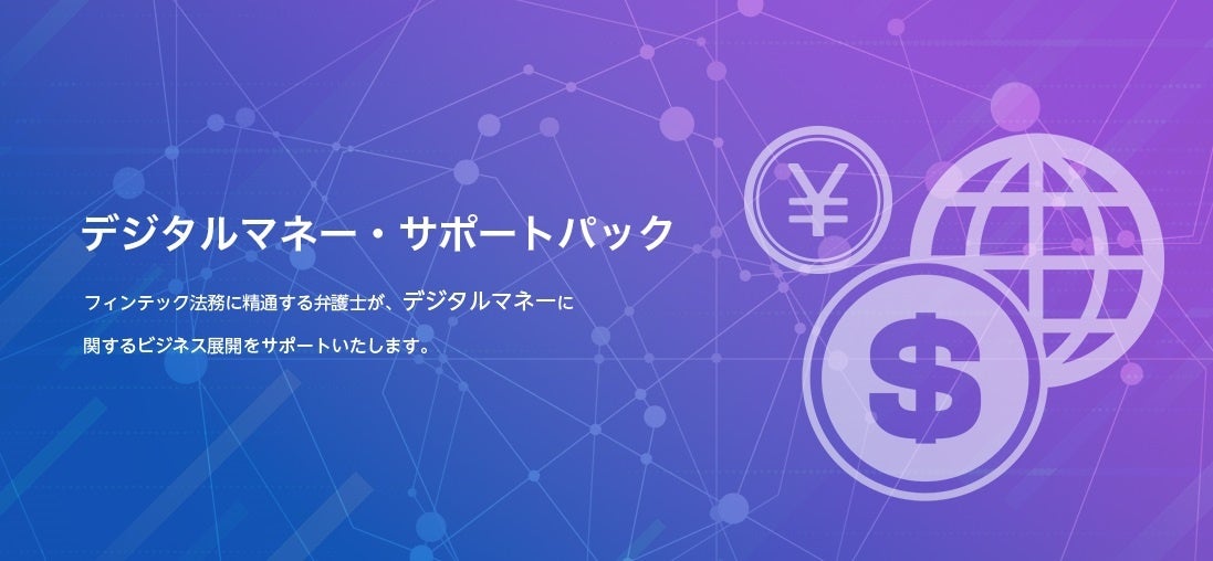 「デジタルマネー・サポートパック」を通じて、デジタルマネーに関する法務については、全般的にサポートさせていただきます。