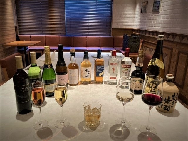 この度、個室利用のお客様限定で、当店のスペシャリティをご堪能いただけるコースに充実の2時間フリーフローが付いたコースプランを販売開始いたします。ワインや生ビール、ハイボール、自家製サングリアなど各種揃う通常のフリーフローメニューに加え、本プランでは特別に「シャンパン」や「ロゼスパークリングワイン」、プレミアムウイスキーの「イチローズモルト」「知多」「碧」もお選びいただけます。広々プライベート空間で、前菜からデザート、食後のカフェまで、全9品のコースを多彩なドリンクとともに楽しめるプランです。
