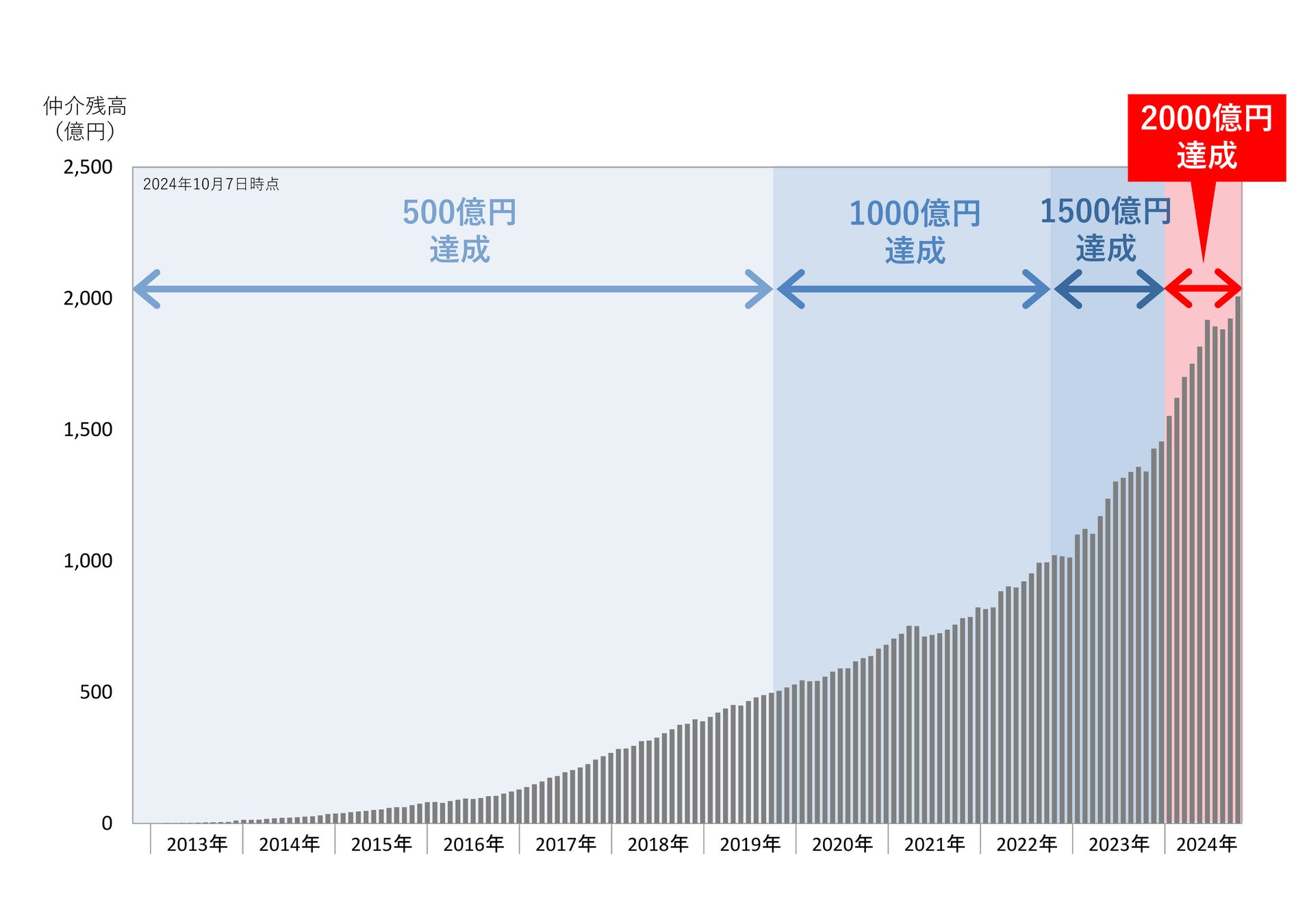 2012年10月の設立から、仲介する預り資産残高を500億円刻みに見てまいりますと、2019年9月に500億円(設立から7年)、2022年9月に1,000億円(500億円達成から3年)、2024年1月に1,500億円(1,000億円達成から1年4か月)を達成しております。