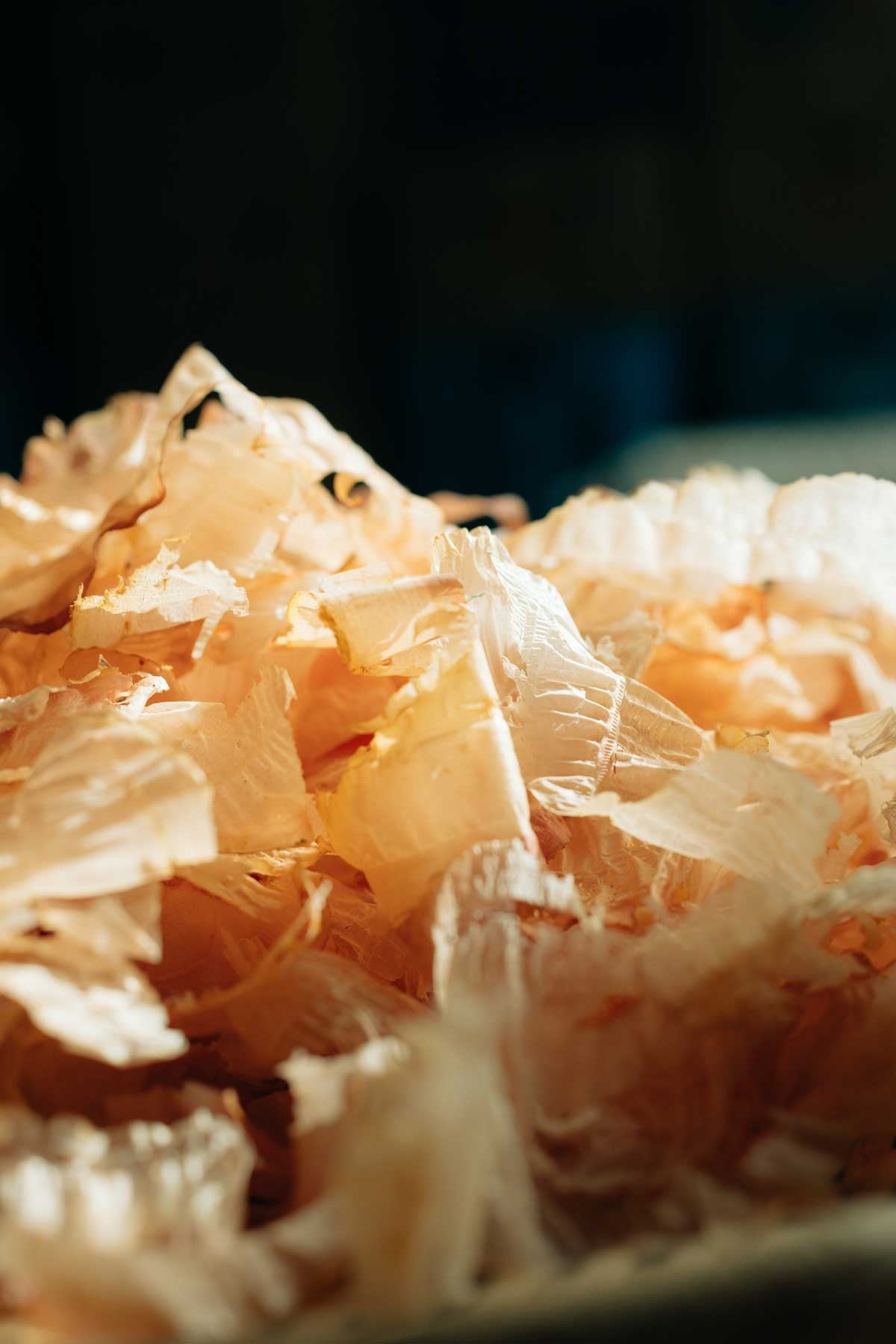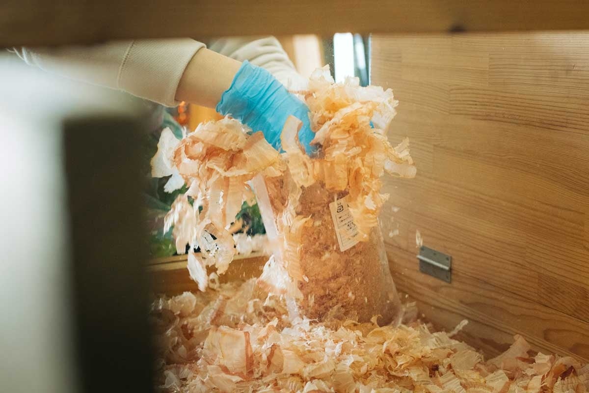 原料は、初代からお付き合いがあり、農林水産大臣賞も複数回受賞実績のある鹿児島枕崎の(株)西村浅盛商店が作る上質でうま味と香りを凝縮した鰹荒本節を用い、独自の加工を施すことで新しい食感を生み出しています。