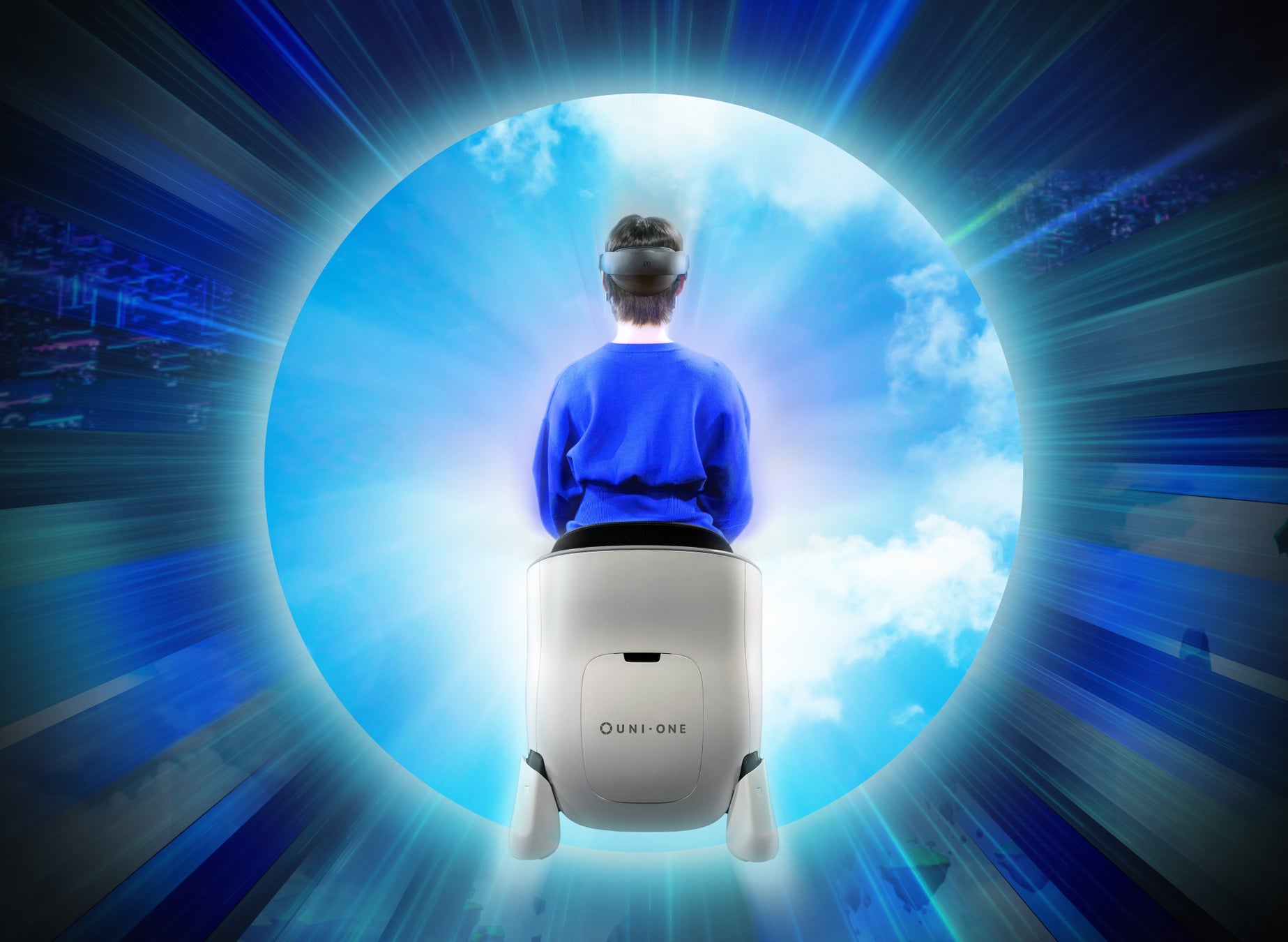 UNI-ONEは、座ったまま体重移動するだけで移動でき、両手が自由に使える着座型のパーソナルモビリティです。Hondaのロボティクス研究から生まれたバランス制御技術と、前後・左右・斜め360度自由に移動できるHonda独自の車輪機構「Honda Omni Traction Drive System(オムニ トラクション ドライブ システム)」を採用しています。座面を上下させることができるため、立っている人に接する際には座面を上昇させ、座っている人や子供と接する際には座面を下降させることで、まわりの人と目線を合わせて仕事をしたり、移動したりすることができます。