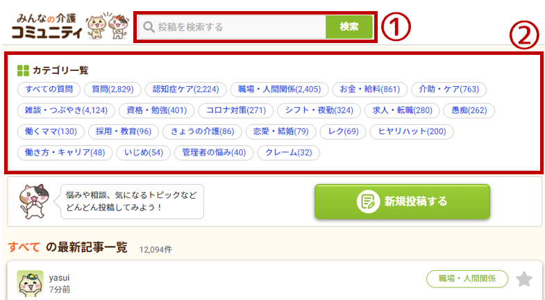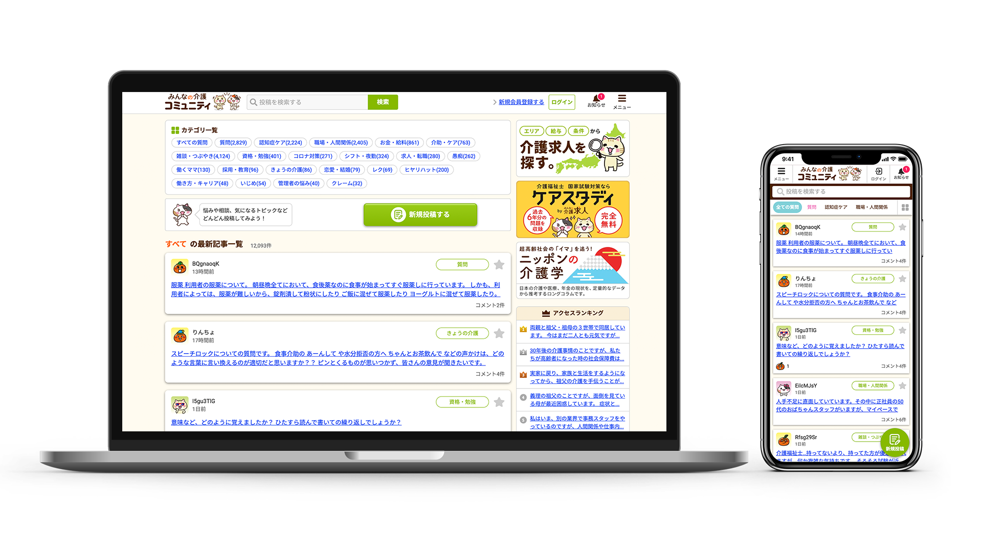 介護従事者向けの情報交換サイト「みんなの介護コミュニティ」のサイトが新しくなりました。より活発にコミュニケーションができるよう、検索機能などを追加しました。