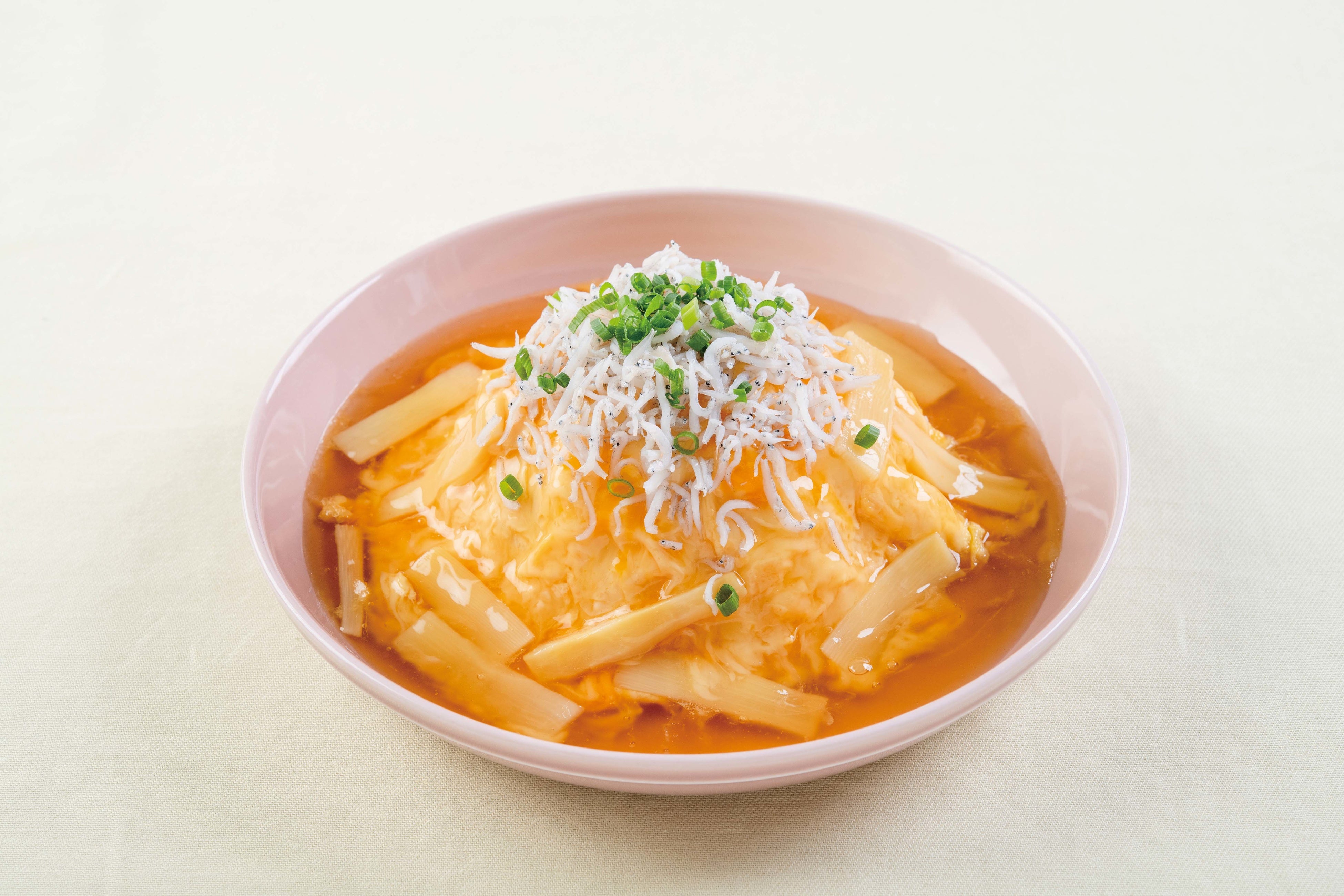 鰹と昆布の出汁が香る和風あんに、筍としらすを合わせました。