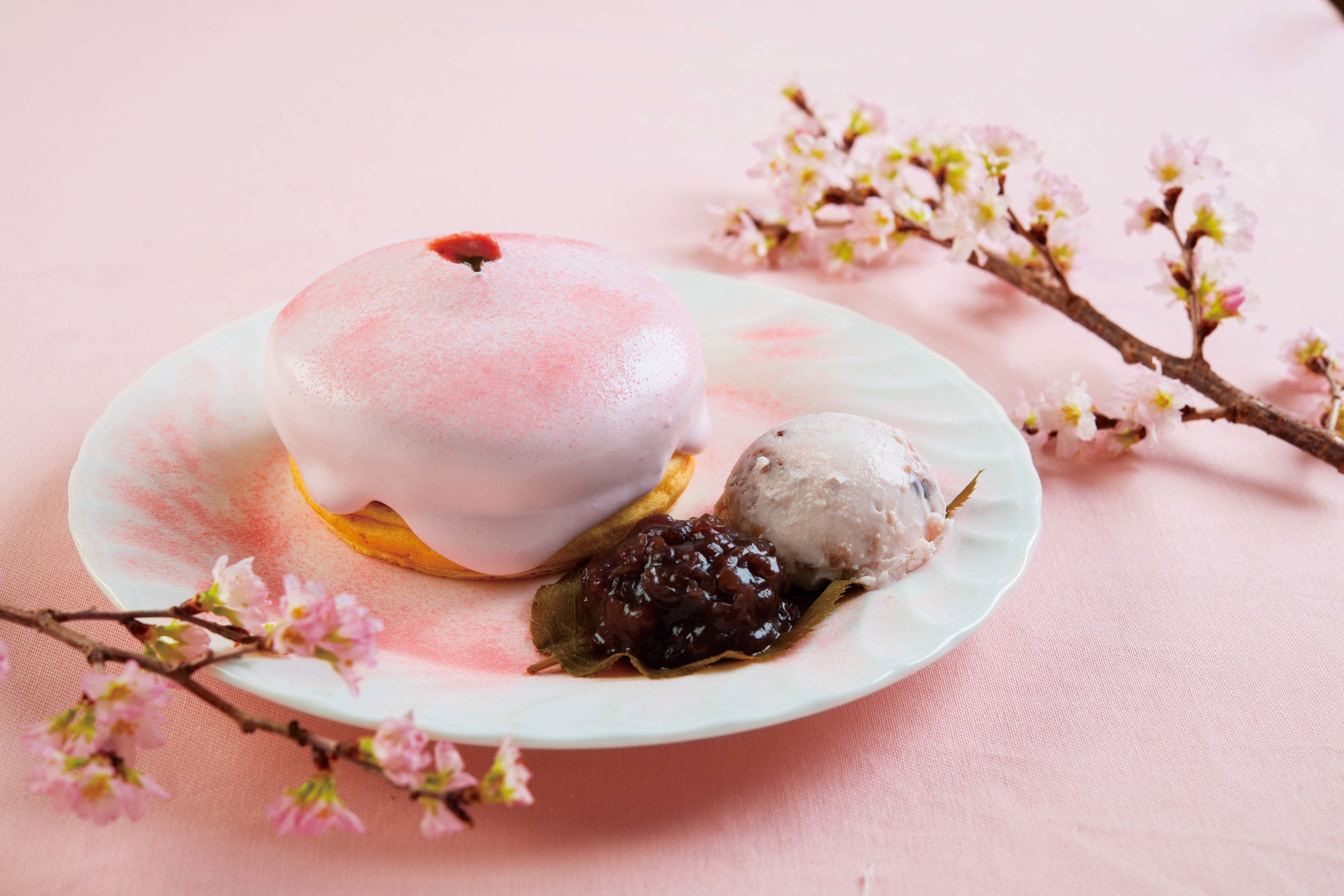 生クリームにのせた桜蜜漬けと、仕上げに振りかけた桜パウダーで、桜づくしのお花見スイーツです。