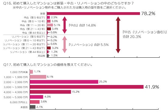 価格は3,000万円台が約4割。また、前回調査と比較して、リノベーションを含む中古マ