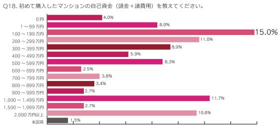 表の0~199万円までの約27.0%は、諸費用のみということになり、4人に1人が頭金0円で購入して