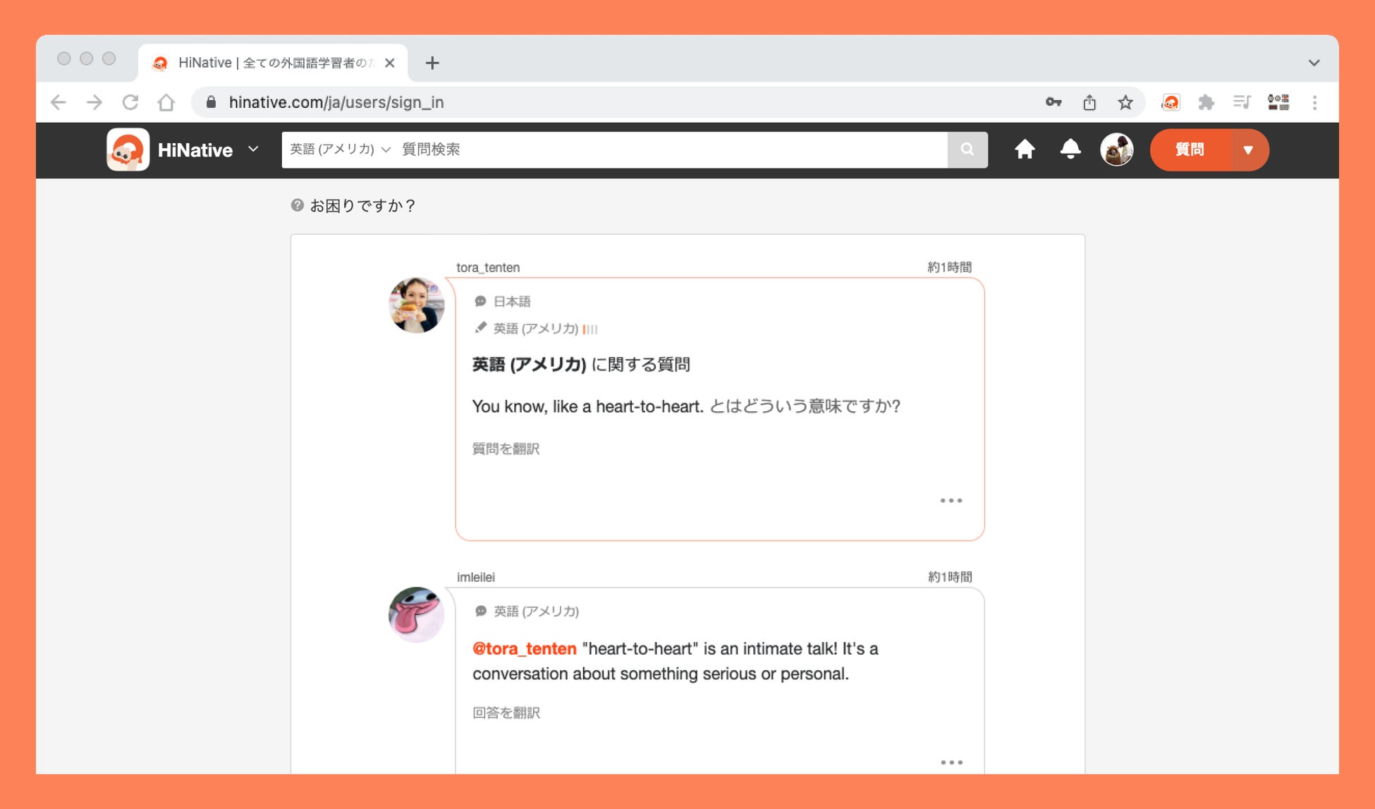 投稿した質問は自動でHiNativeの質問ボックス内に反映されます。あとはネイティブスピーカーからの回答を待つだけで、リアルな外国語表現やニュアンスを学ぶことができます。