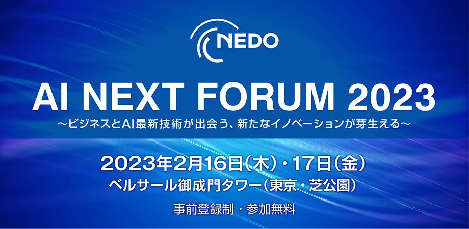 最先端のAI研究成果に触れられるシンポジウム NEDO『AI NEXT FORUM 2023』を2023年2月に開催