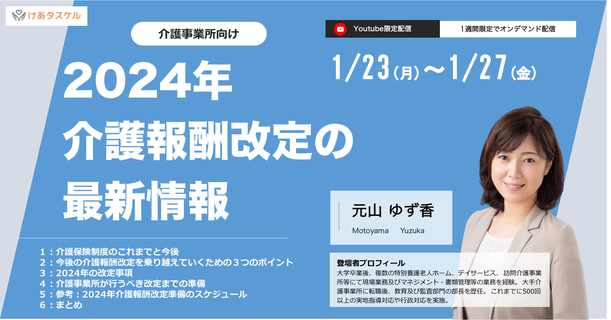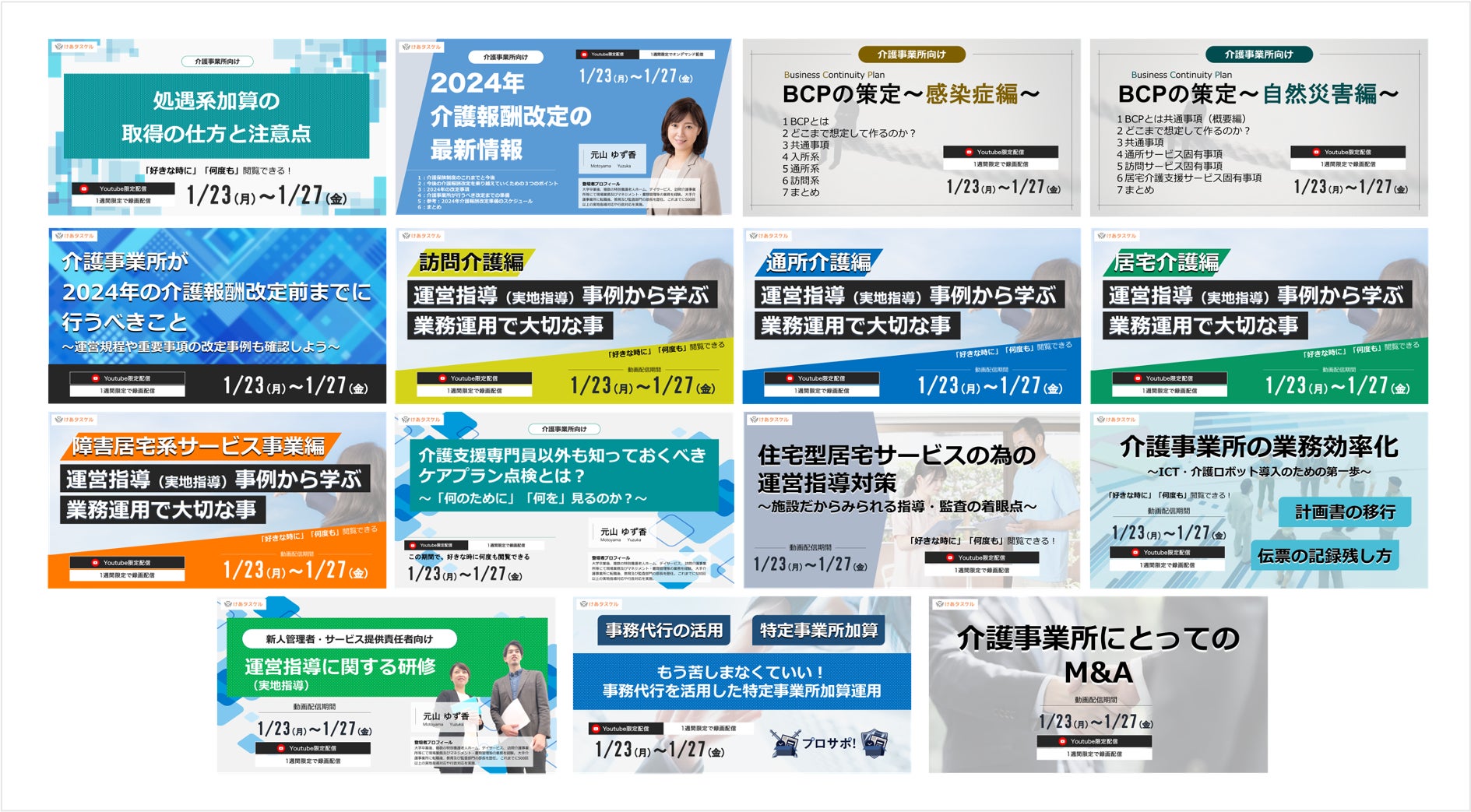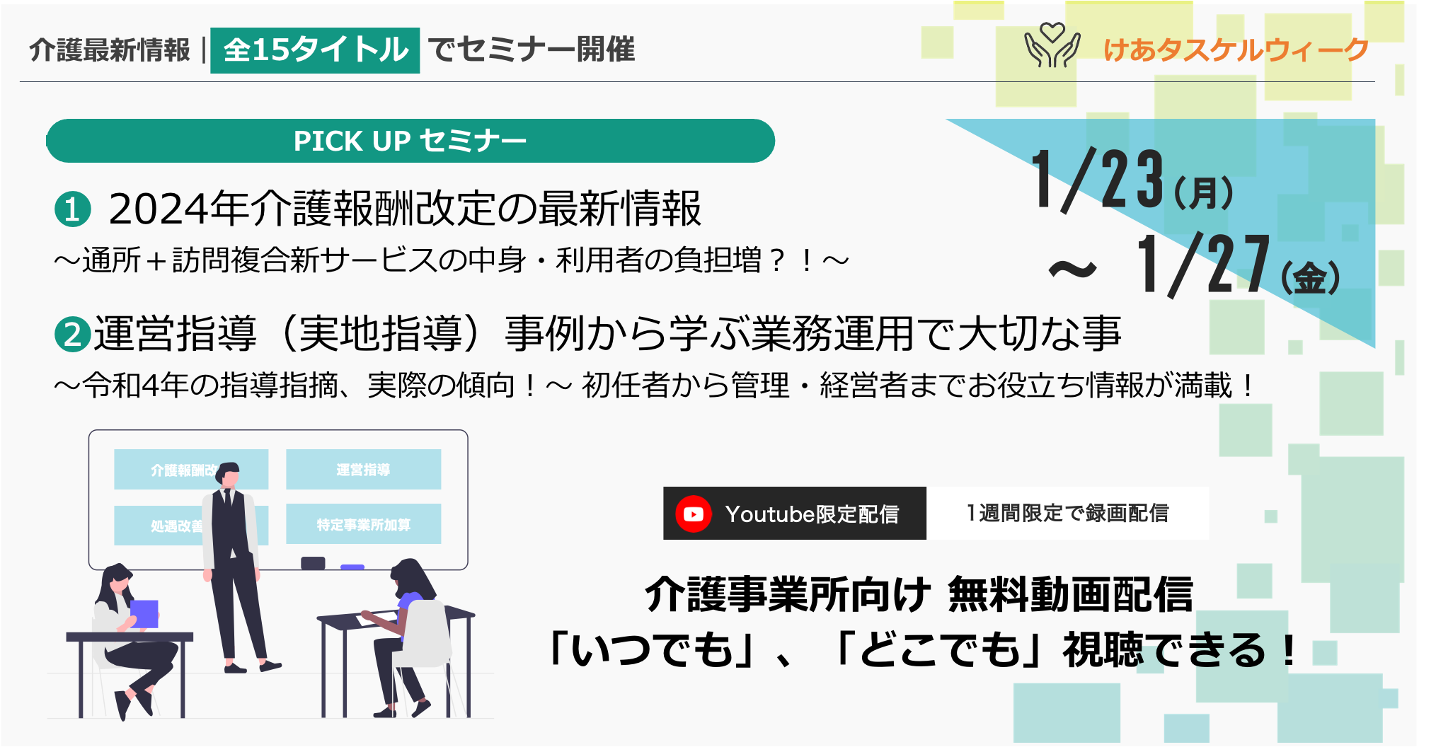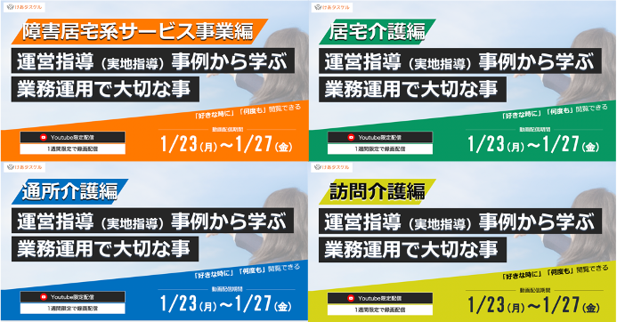 更には、忙しい介護事業者の皆様でも好きなタイミングでご視聴いただけるように今回からオンデマンド配信(Youtubeで視聴)を行うことといたしました。