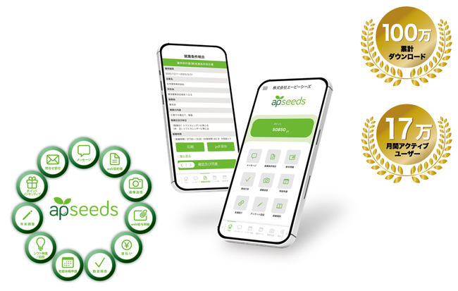 『apseedsポータル』は2015年にリリースし、派遣企業様を中心に業務効率やスタッフの利便性を追求し、雇用を支える企業とそこで働くスタッフのデジタル化をサポートするサービスとして進化を続けています。2023年3月には累計ダウンロード数100万、月間アクティブユーザー数17万を突破しています。