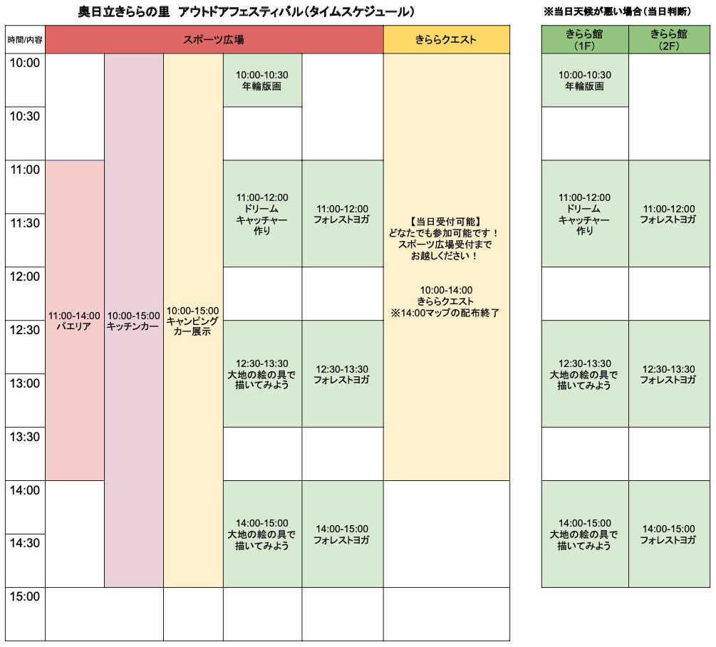 今回のフェスティバルでは、場内の「スポーツ広場」をイベント会場とし、年輪版画やドリームキャッチャー作りなどの自然素材を使ったクラフト体験、ヨガ体験など、親子で楽しめる多彩なプログラムを複数用意しました。入場料・イベント参加費は無料となっておりますので、ぜひこの機会に自然豊かな奥日立きららの里で、ご家族の特別な思い出づくりをお楽しみください。