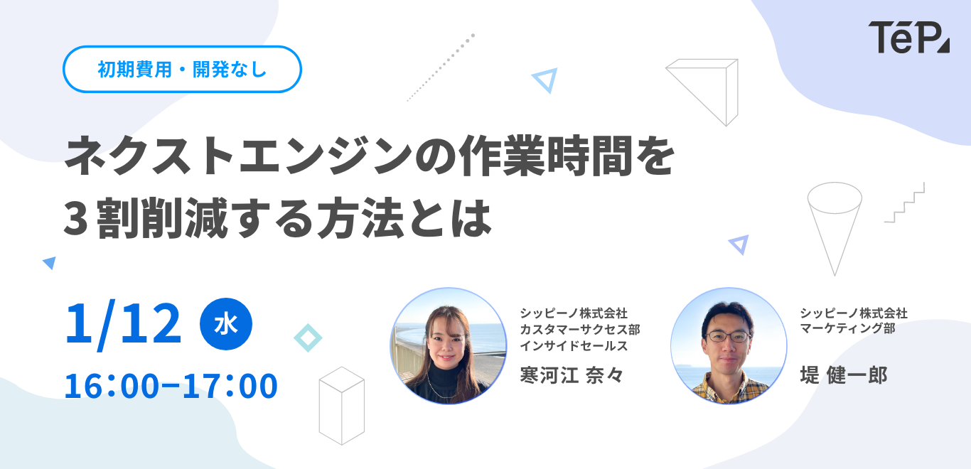 【1/12 オンラインセミナー】ネクストエンジンの作業時間を 3 割削減するための TēPs 活用方法!