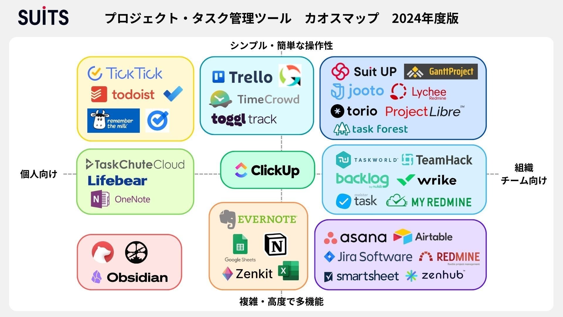 この度、株式会社スーツ(所在地:東京都千代田区、代表取締役社長CEO:小松 裕介)は、業界関係者にヒアリングを実施した上で「プロジェクト・タスク管理ツール カオスマップ 2024年度版」を作成、公開いたしましたので、お知らせします。