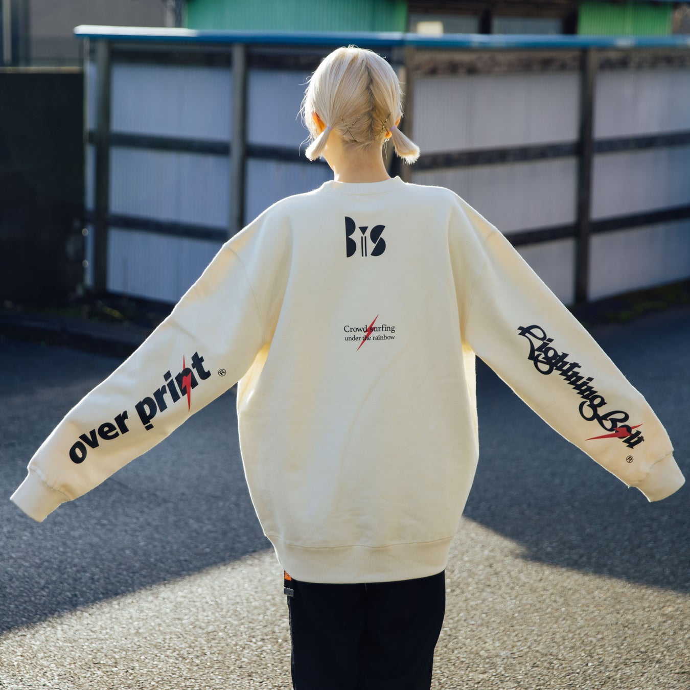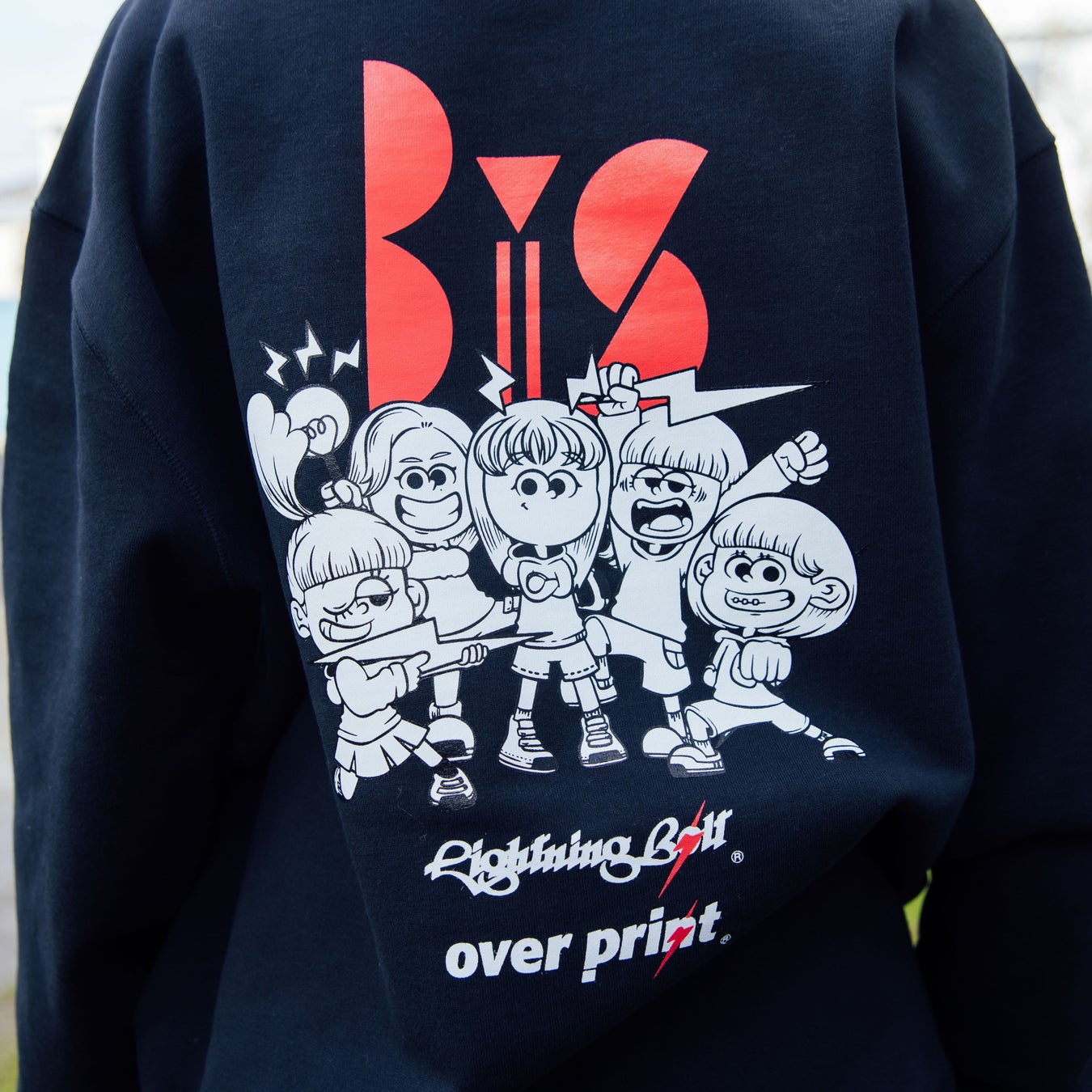 over print所属アーティストのZERO ZERO HEROが書下ろしたBiSメンバーとLIGHTNING BOLTの要素を組み合わせたグラフィックがポイントのスウェットを数量限定で発売します。