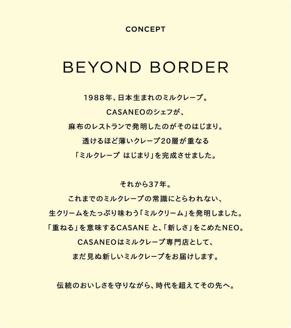 「CASANEO」の方向性を体現するブランドコンセプト「BEYOND BORDER」を開発。「伝統のおいしさを守りながら、時代を超えてその先へ」という思いを表しています。同時に、コンセプトに込めた思いをより分かりやすく表現する宣言文として、ブランドステイトメントも開発しました。