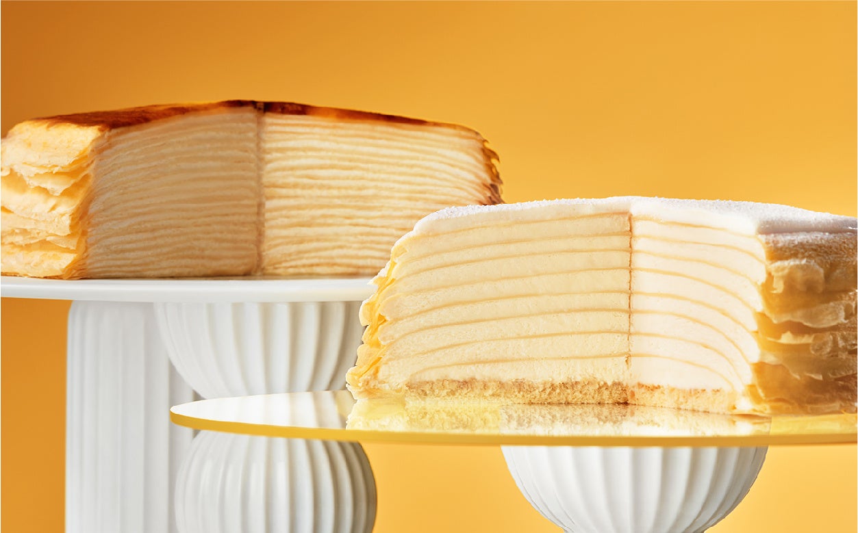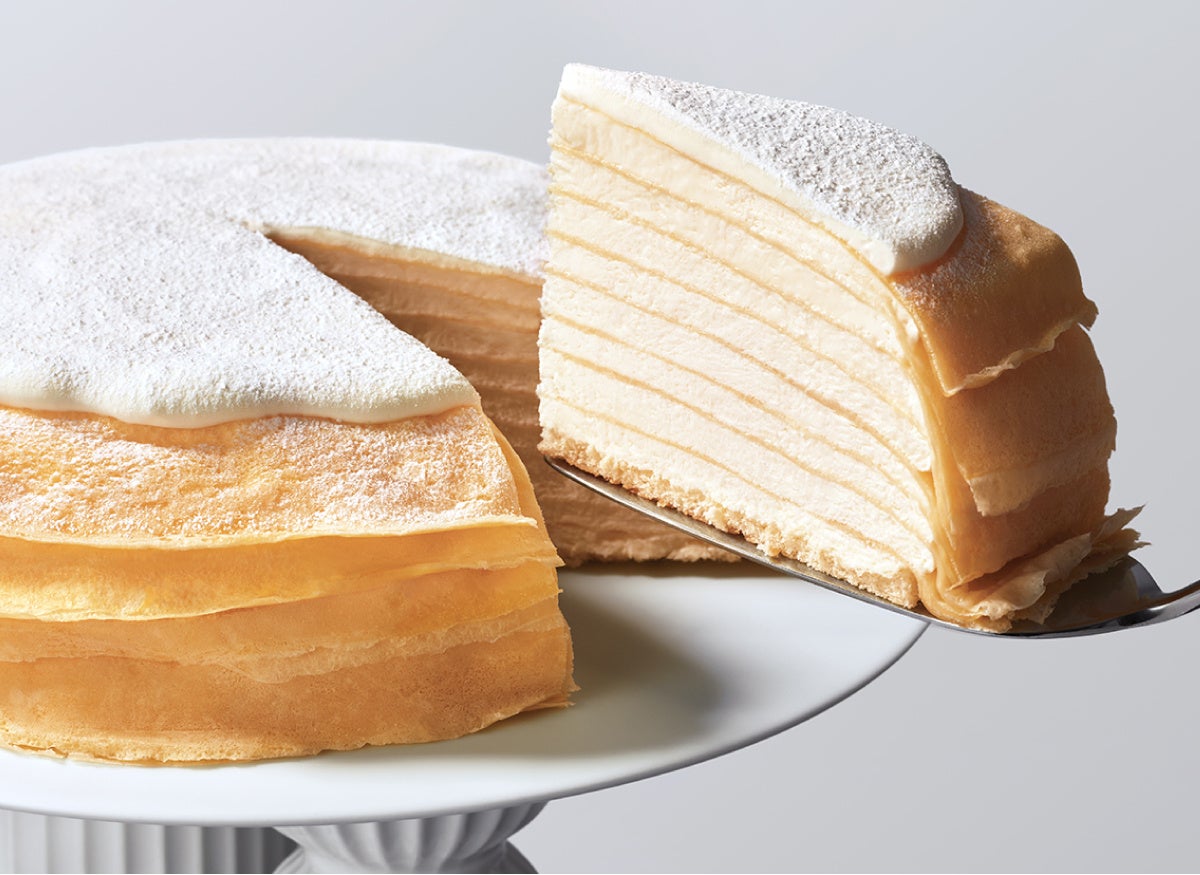 1988年誕生、すべてのミルクレープの発祥の味。向こうが透けるほど薄いクレープを20層重ねて完成させる、真似できない口どけが魅力です。