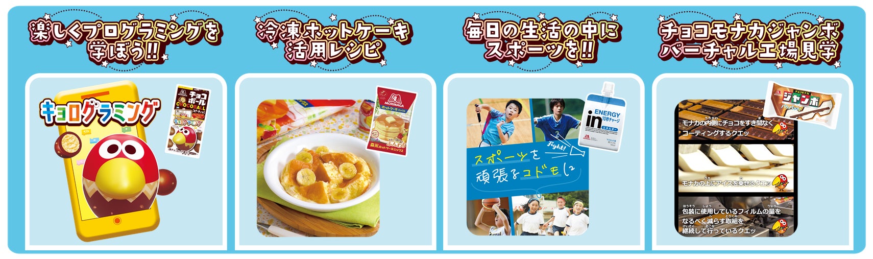 森永製菓の人気商品に関連した様々なコンテンツを展開し、子どもたちの未来への学びを応援いたします。