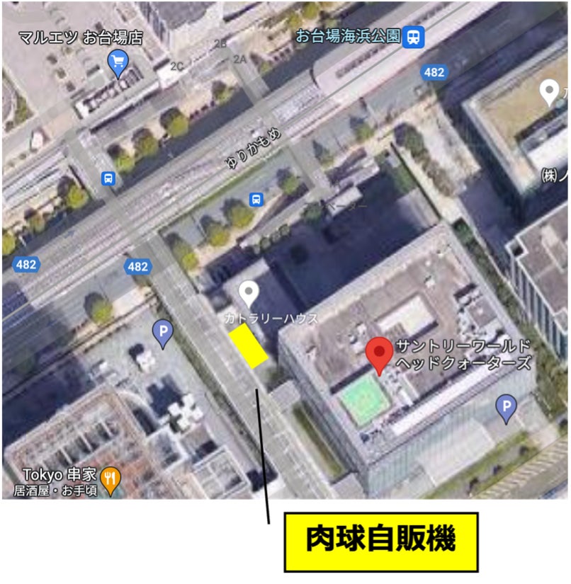 開発に伴い、2月22日(水)9:00〜17:00限定で、サントリーワールドヘッドクォーターズ 2階カトラリーハウス前(〒135-0091 東京都港区台場2丁目3−3)に「肉球自販機」を設置いたします。