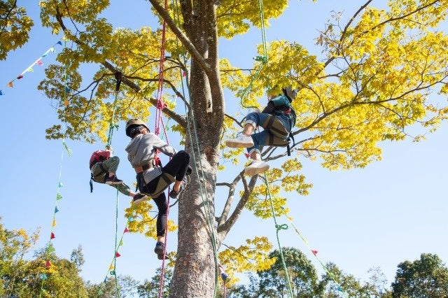 会場内で楽しむことができるアクティビティ体験は合計で19種類。県内のキャンプ場事業者にもご協力いただき、ツリークライミングやスラックラインの他、キャンプでも活用できるバドニング体験や特性スパイス作りなど、体を動かす、モノづくりをする等、多種多様な体験を提供いただきました。