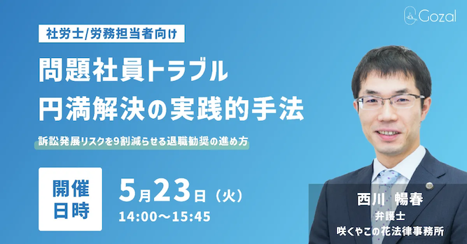 【社会保険労務士/労務担当者の方向けオンラインウェビナー】問題社員トラブル円満解決の実践的手法