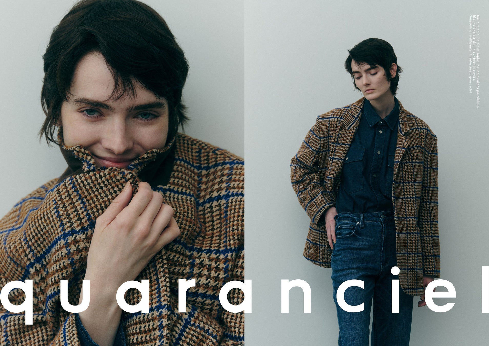 ブランド名の由来は、フランス語の「quarante(40)」に「ciel(空)」を掛け合わせた造語。女性の40歳は仕事や子育て、プライベートと多忙を極め、ライフスタイルも様々な一方で、年齢と経験を重ねて自分のスタイルが確立されていく。「quaranciel」は、そんな果てしなく広がる空のような可能性を感じる、魅力的な大人の女性に寄り添うブランドです。