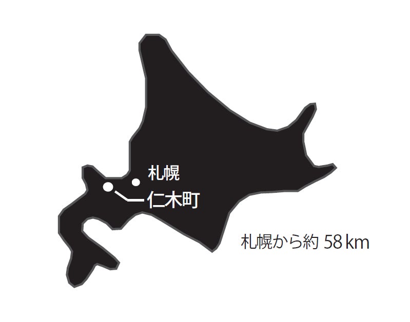 仁木町は北海道南西部、積丹半島の付け根に位置し、札幌からは車で1時間ほどの距離*。古くから果樹栽培が盛んで、豊かな自然環境とおいしい水が流れるのどかな農村地域です。最近では隣接する余市町とともにワイン用ぶどうの栽培面積が増えつつあり、現在ワイナリーは6社、委託醸造も含めると15社がワインを生産しています。