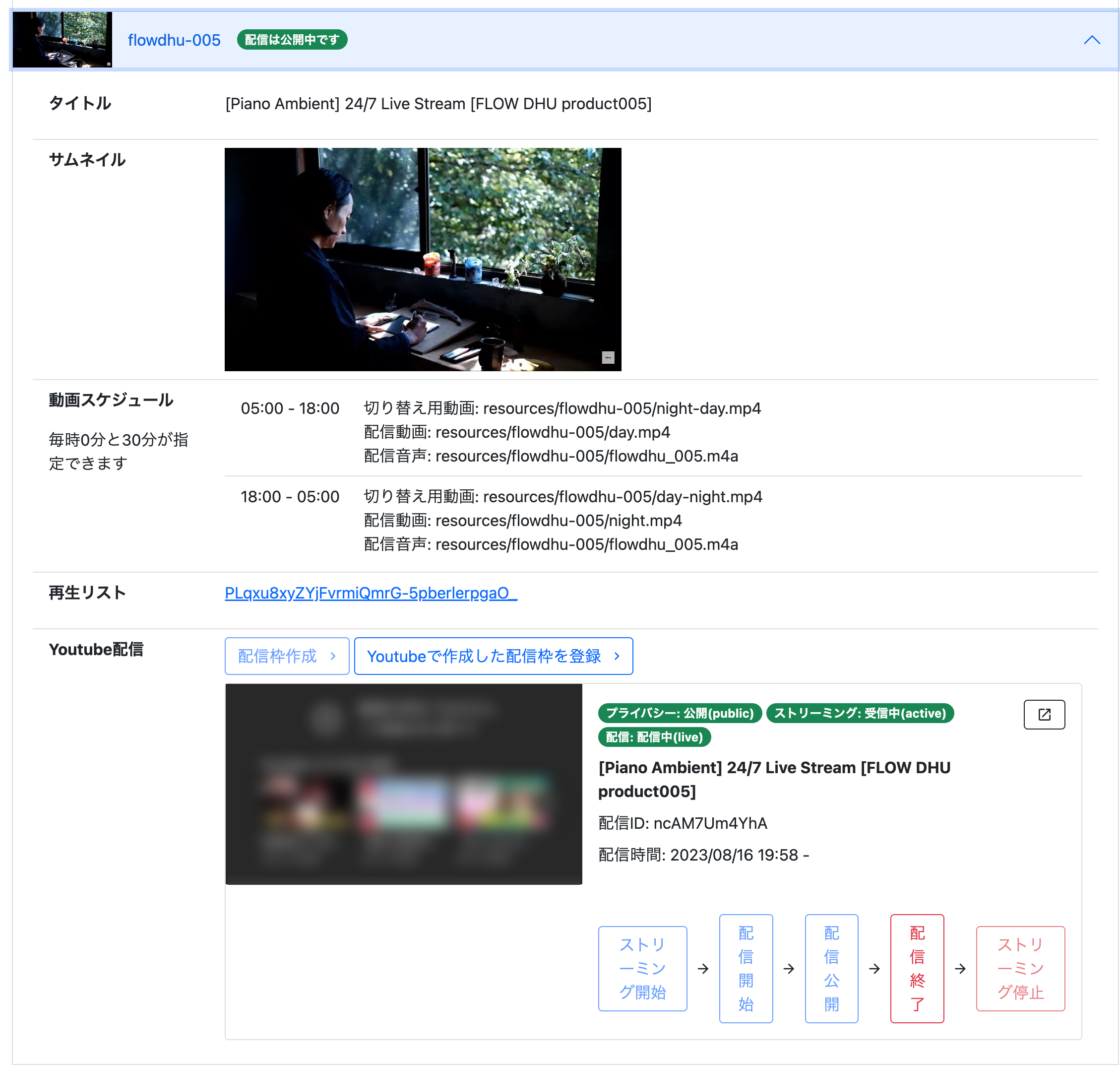 配信開始・終了時には、自動的に再生リストへの追加・削除が可能です。