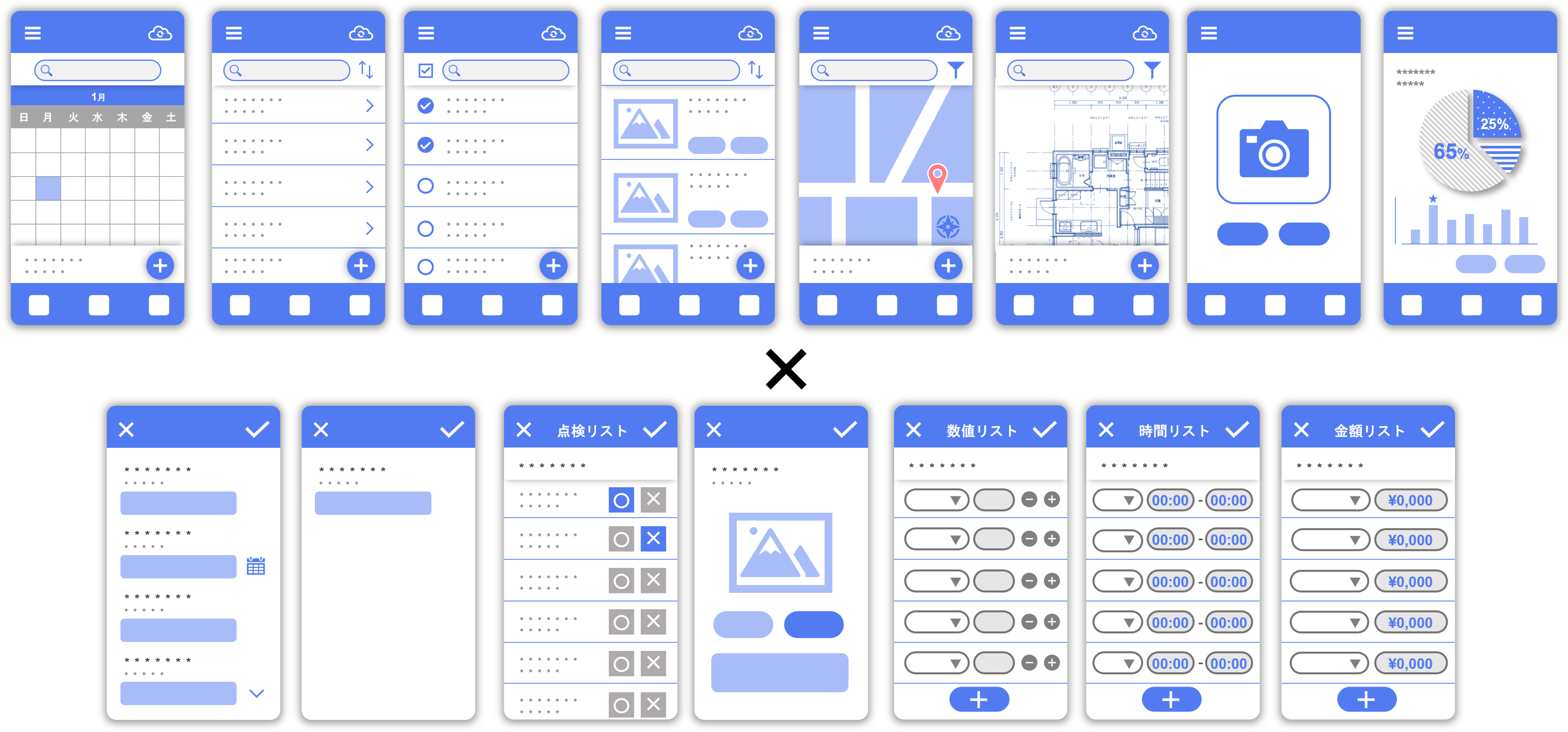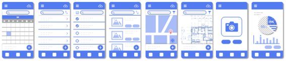 本サービスでは、豊富な画面パターンとカスタム機能で、現場の効率化に役立つさまざまなアプリを表現可能です。さらに、Unifinity Platformの専用開発ツール「Unifinity Studio」を使えばさらに詳細なカスタマイズも可能であり、変革のための取り組みをすばやくはじめて、納得いくまで改善を続けることができます。