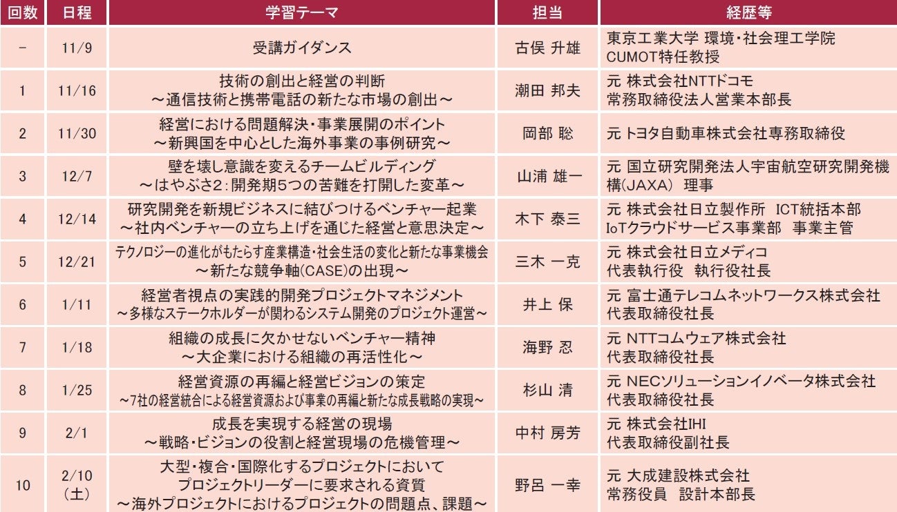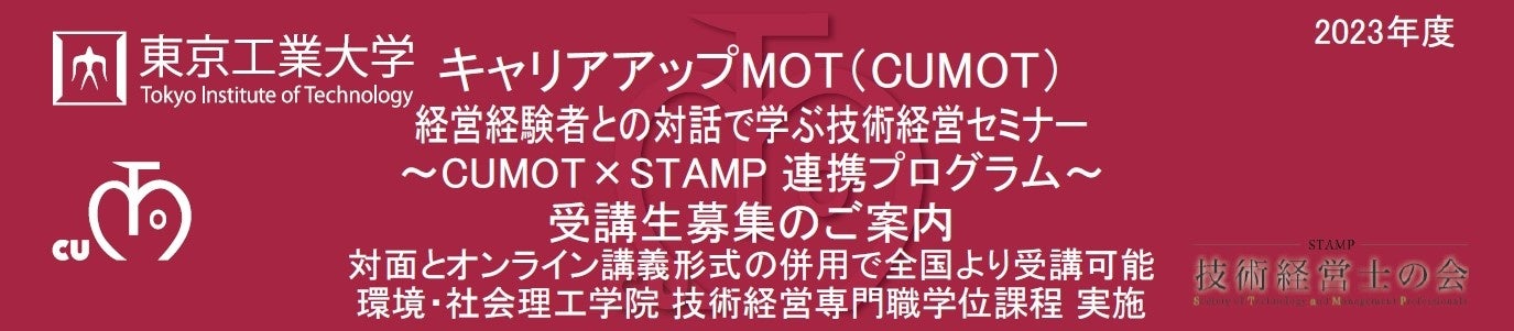 東京⼯業⼤学 社会⼈向けMOT(技術経営)コース「経営経験者との対話で学ぶ技術経営セミナー 〜CUMOT×STAMP 連携プログラム〜(全10回)」が11⽉に開講!
