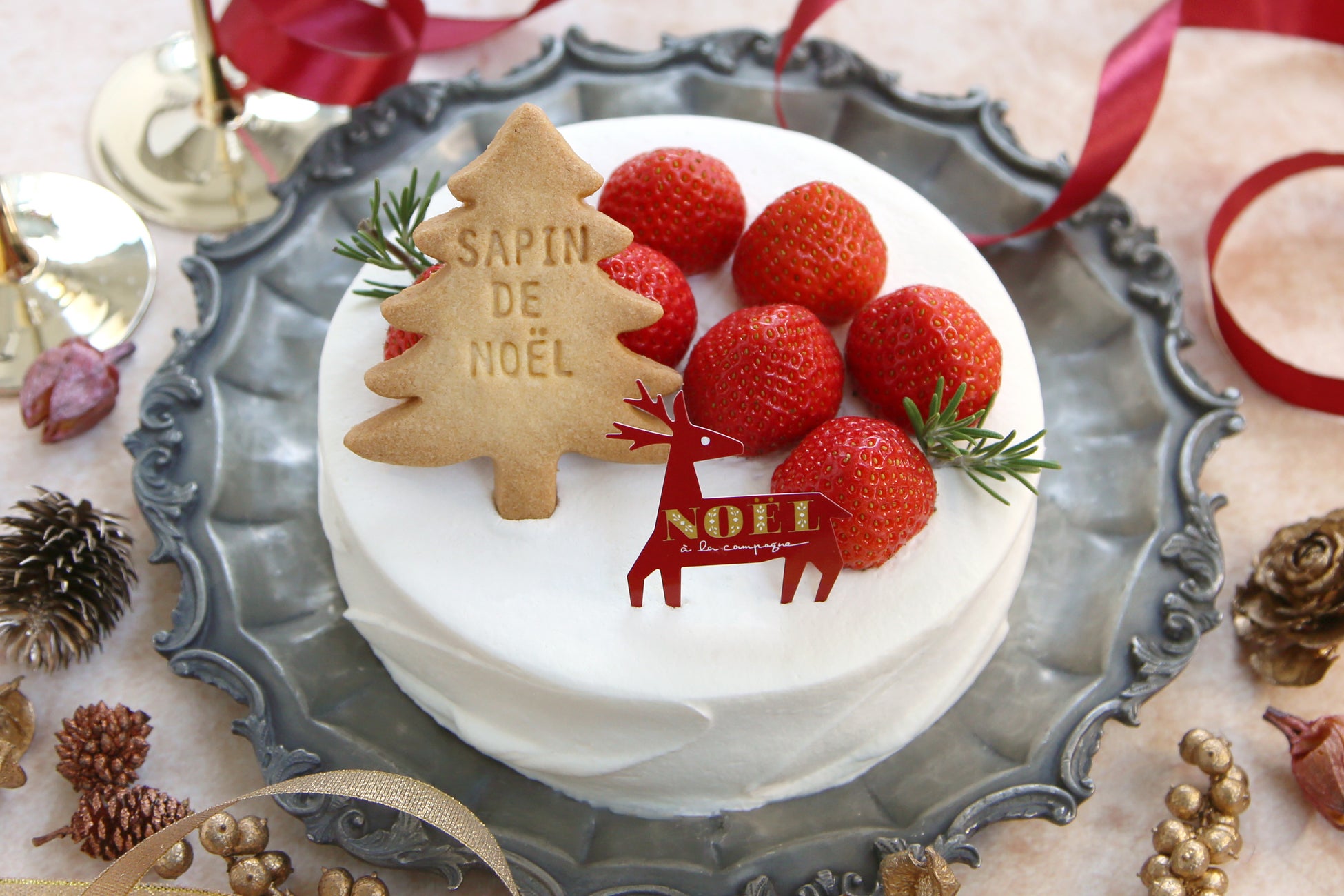 [グランデュオ立川1F]パティスリー ア・ラ・カンパーニュ ジェノワーズ・オ・フレーズ 5,184円(税込) しっとりと焼き上げたスポンジで苺をサンド。もみの木のクッキーが楽しいイチゴのショートケーキ。