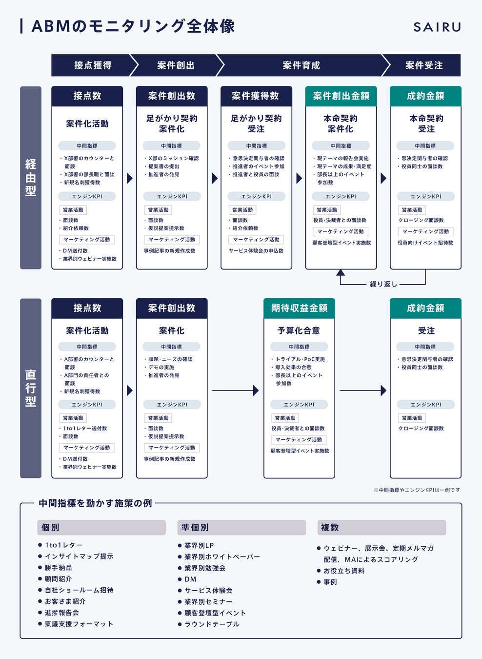 ABMは受注までに1年以上かかることもあり、「どこで止まっているのか」「このまま続けていいのか」が見えにくくなりがちです。何を・いつ・どう測るかを設計しないまま進めると、成果が出る前に取り組みが頓挫します。