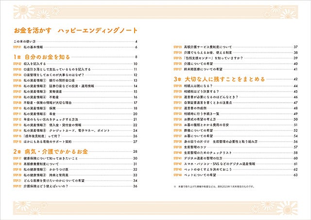 人生のフィナーレに向かって、気になるのは「最期の迎え方」。なかでも「先立つもの」に不安が……という方も多いでしょう。でも、暗くならないでください。本書で学びながら自分の現状や気持ちを記入して、ハッピーなエンディングにしていきましょう。