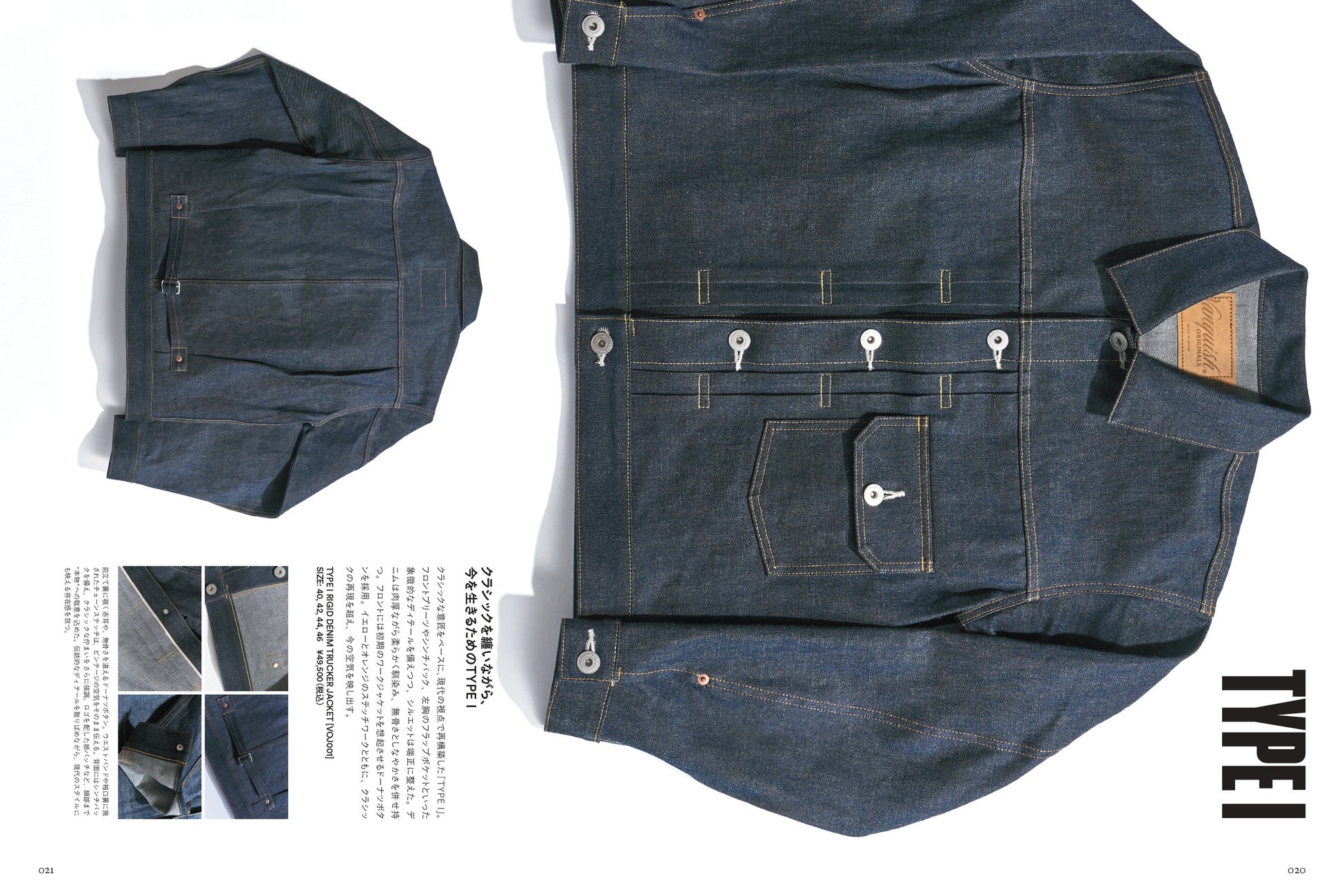 いずれのモデルも、デニムの聖地・岡山にて、旧式の織機で織り上げた13.5オンスのオリジナルリジッドデニム生地を使用し、縫製いたしました。“V字型のベルトループ”やオリジナルボタンなど、かつてのヴァンキッシュを象徴するディテールや、ビンテージの意匠を踏襲しながらも、現代的なシルエットと、40代でも無理なく着こなせるサイズ感に仕立てています。