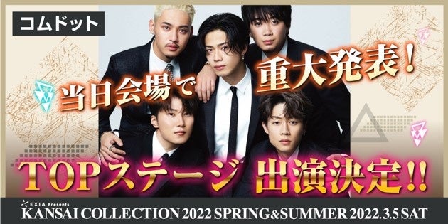 『EXIA Presents KANSAI COLLECTION 2022 S/S』2022年3月5日(土) 開催 コムドットが関コレTOPステージに登場!さらには当日ステージ上で重大発表も!?