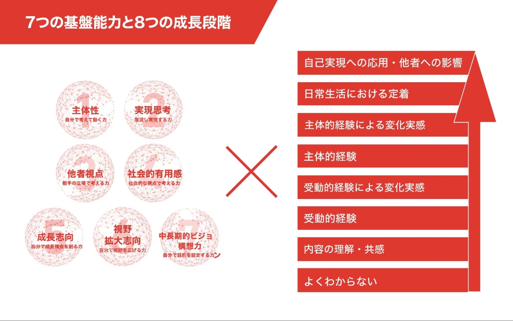・社員個人については、7つの「基盤能力」を指標とし、8つの成長段階を可視化します。