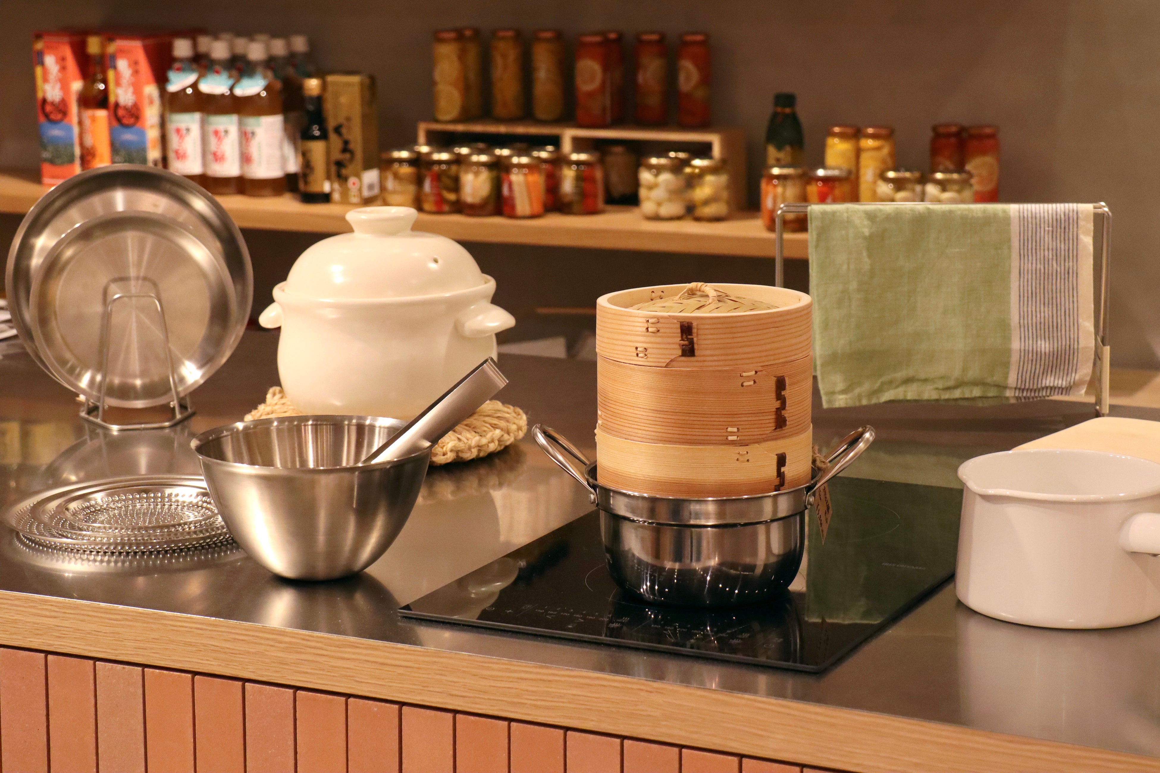 ・キッチンエリア: 伝統的な調理道具の機能美を五感で確かめられる空間。