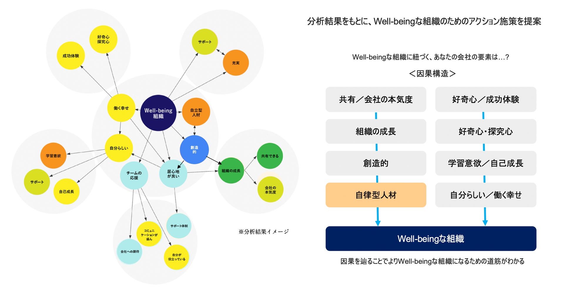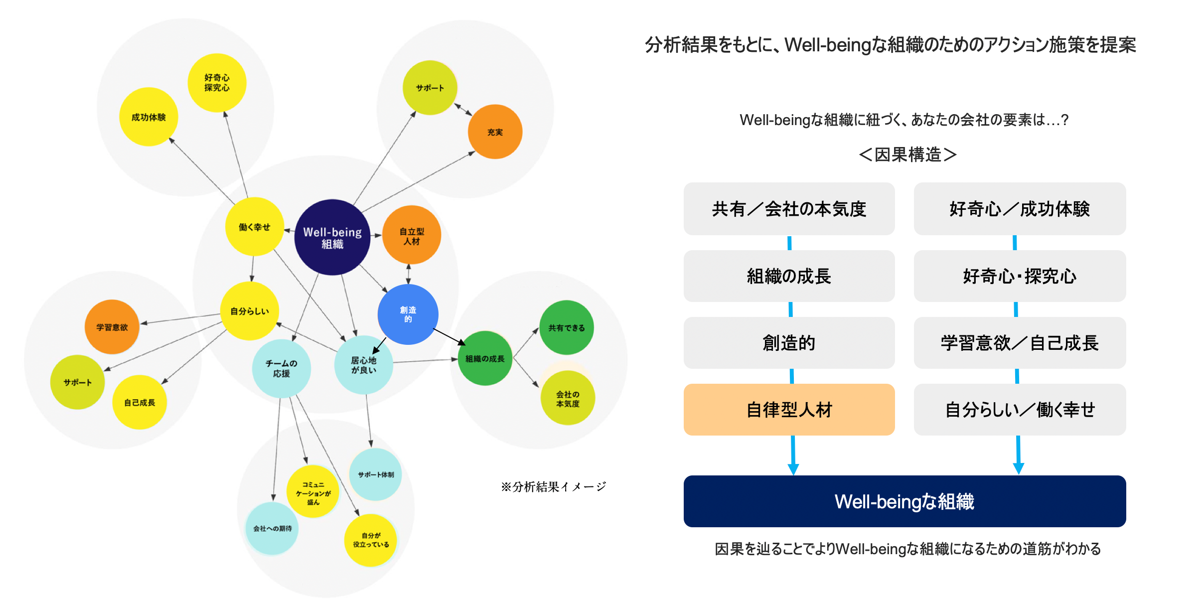 ※ Well-being組織診断は、クウジット株式会社と株式会社電通総研との共同研究成果「ワクワク働くWell-being組織モデル」および因果情報分析ツール「CALC」を用いています。