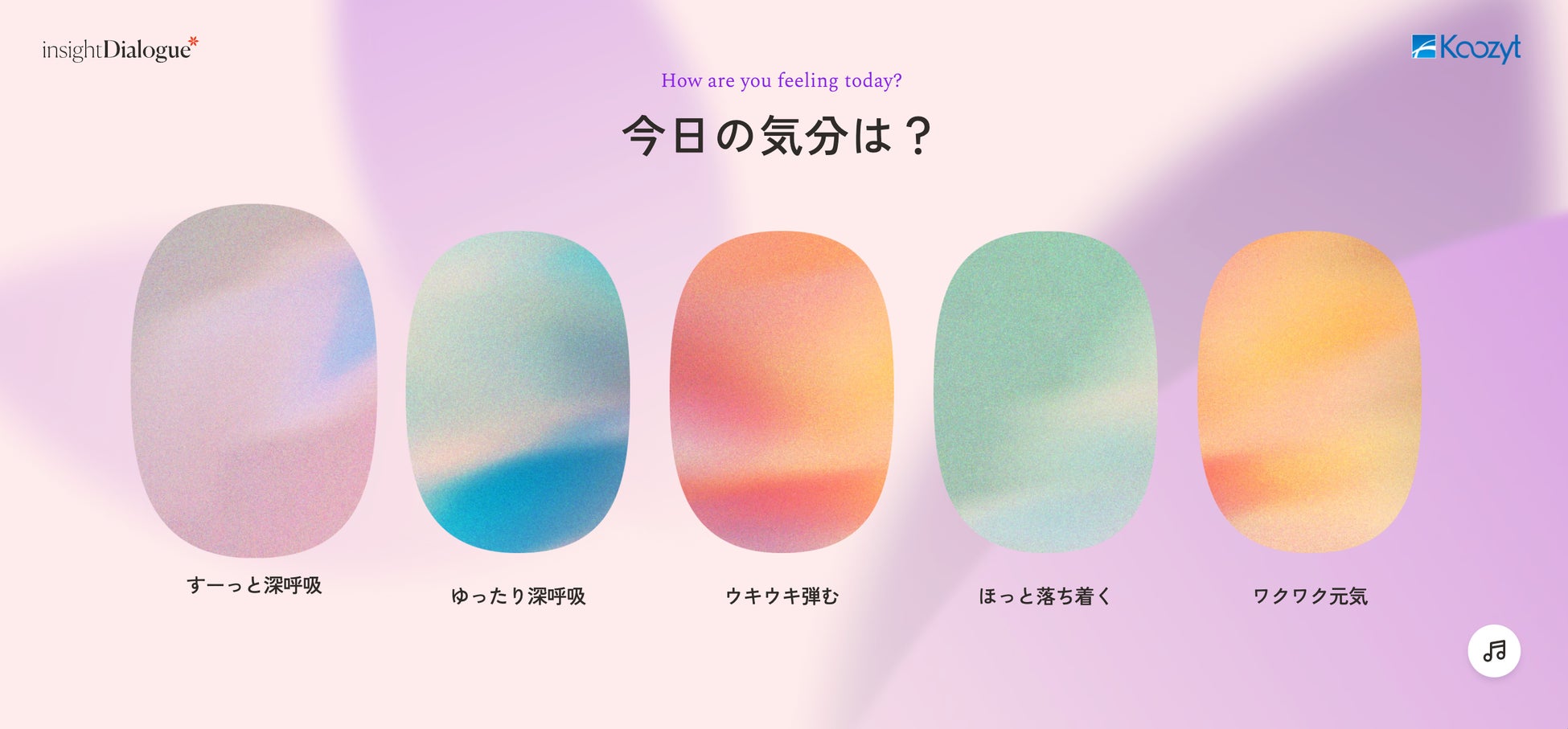 「Insight Dialogue」は、アンケートの体験もWell-beingでありたいをコンセプトに、体験を「内省」と「リフレッシュ」の時間に切り替えることを目的に開発された、新しいアンケート体験ソリューションです。五感・直感に沿ったUIUXで、“今の自分”をより的確に投影できる仕組みを目指しています。