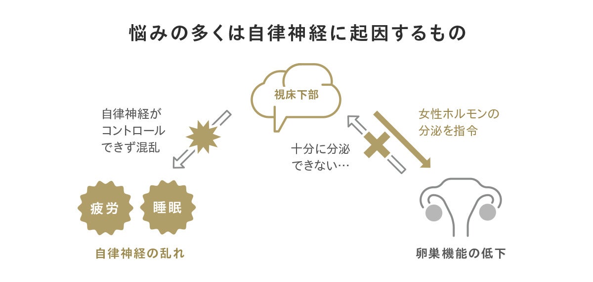 更年期は特に、ホルモンの乱高下によりバランスを取りづらくなることで、さまざまな不調をきたし、女性の人生において心身にとても大きな変化が起こります。美容・健康面での悩みも目立つようになり、前向きでいることが難しいことも珍しくはないのです。