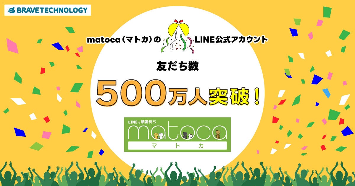 株式会社ブレイブテクノロジー(本社:千葉県流山市おおたかの森、代表取締役:磯本 悟、以下「当社」)は、当社が開発・提供する順番待ちに特化した整理券システム「matoca(マトカ)」のLINE公式アカウント「 matoca|順番待ち」における友だち登録者数が500万人を突破したことをお知らせいたします。